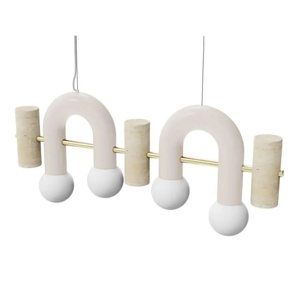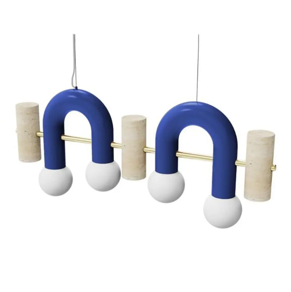 Pairing smooth and rough surfaces that contrast with one another, Art Deco inspired Pyppe lamp collection gives way to a new approach in shape and balance. Emphasizing the tension between mass and shape, it provides soft points of interaction that connect sinuous and delicate forms with poised proportions. A collection that is raw and expressive yet sophisticated, where each lamp complements each other but can ultimately exist on its own.Tubular shapes finished in a smooth homogeneous Powder-coating finish and a delicate Polished Brass structure and a carefully sculpted Travertine stone give shape to this elegant Pendant. Frosted Glass Globes softly diffuse the light.Other colors available see more images on this listing and other Pyppe Flat listings.Made to order and color customizable.Utu Lamps is part of the Mambo Unlimited Ideas design group from Portugal.Utu’s contemporary aesthetic results in original top-quality luminaries with international inspiration while rooted in the local knowledge.Each product is handmade in Portugal by our craftsman using time-honored techniques honed over centuries. Materials are thoughtfully combined and carefully finished.