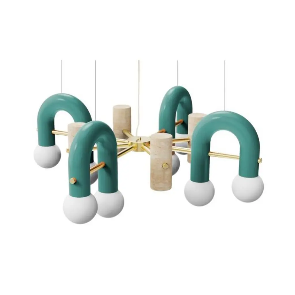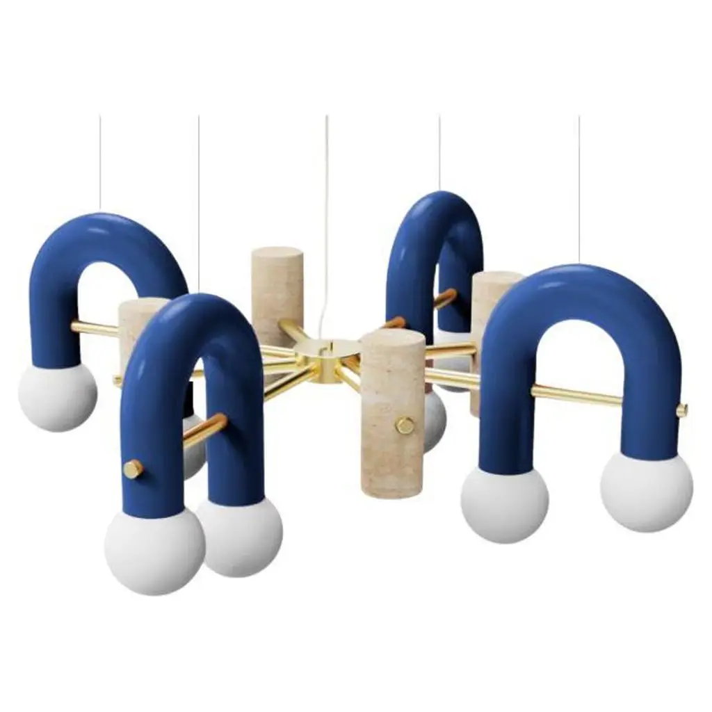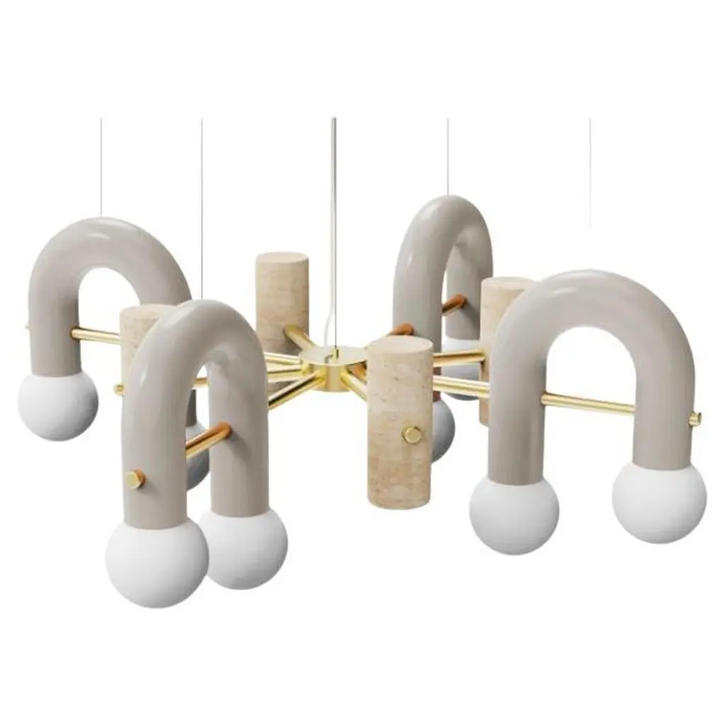 Pairing smooth and rough surfaces that contrast with one another, Art Deco inspired Pyppe lamp collection gives way to a new approach in shape and balance. Emphasizing the tension between mass and shape, it provides soft points of interaction that connect sinuous and delicate forms with poised proportions. A collection that is raw and expressive yet sophisticated, where each lamp complements each other but can ultimately exist on its own.Tubular shapes finished in a smooth homogeneous Powder-coating finish and a delicate Polished Brass structure and a carefully sculpted Travertine stone give shape to this elegant Pendant. Frosted Glass Globes diffuse a soft lighting.Other colors available see more images on this listing and at our other listings.Made to order and color customizable.Utu Lamps is part of the Mambo Unlimited Ideas design group from Portugal.Utu’s contemporary aesthetic results in original top-quality luminaries with international inspiration while rooted in the local knowledge.Each product is handmade in Portugal by our craftsman using time-honored techniques honed over centuries. Materials are thoughtfully combined and carefully finished.