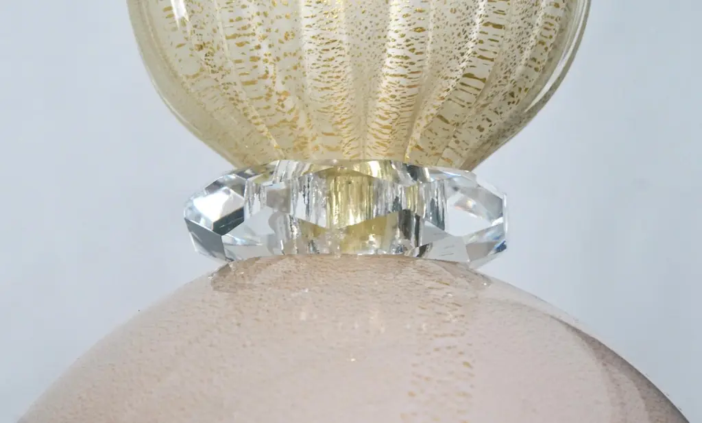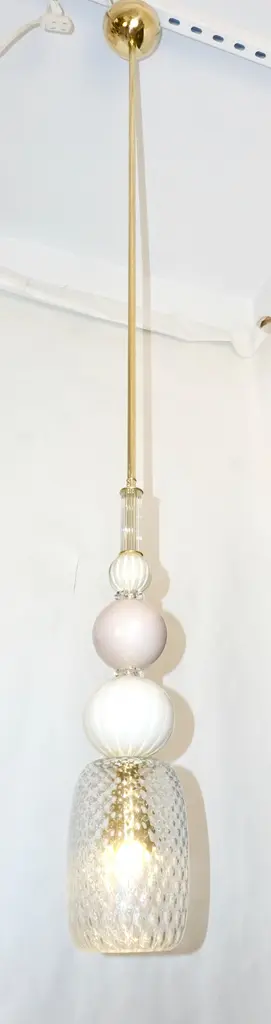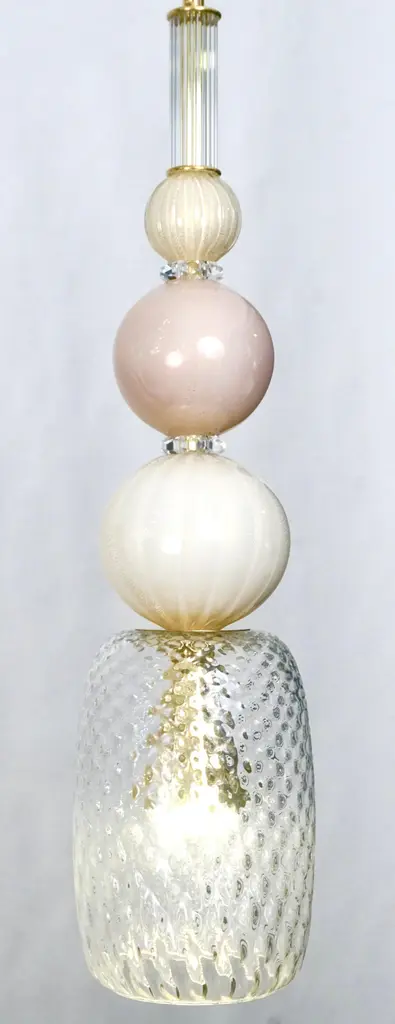 Contemporary Bespoke Italian Crystal Pink Gold Cream Murano Glass Pendant Light