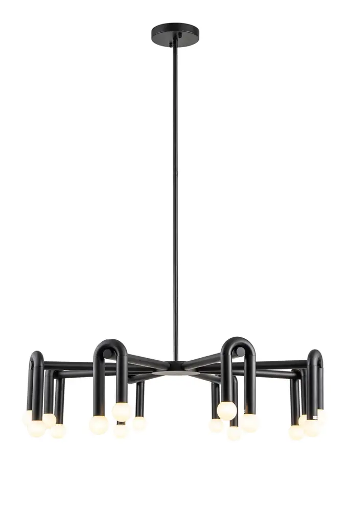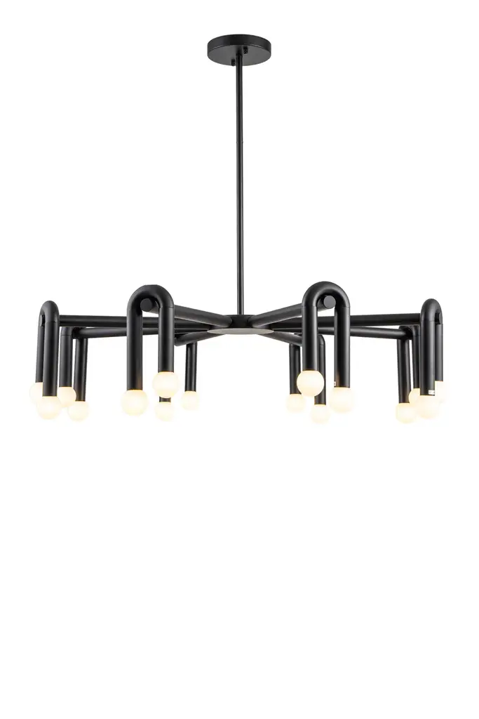 erene and elegant, the Melt Pendant Lamp, Black was made to create an atmosphere.The matt black metal design of this pendant is immediately stylish. It features a striking shape with smooth curves that work in contrast to the boldness of the coloring. A blend of soft and hard elements really makes this chandelier stand out.The matt black metal design of this pendant is immediately stylish. It features a striking shape with smooth curves that work in contrast to the boldness of the coloring. A blend of soft and hard elements really makes this chandelier stand out.W37 x D37 | Weight 18lbsW93 x D93 x H25 cm | Weight 8kgsMaterials | Glass, MetalE14