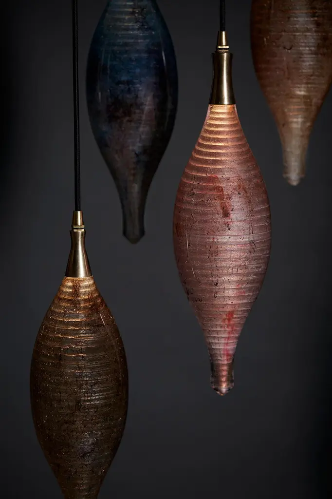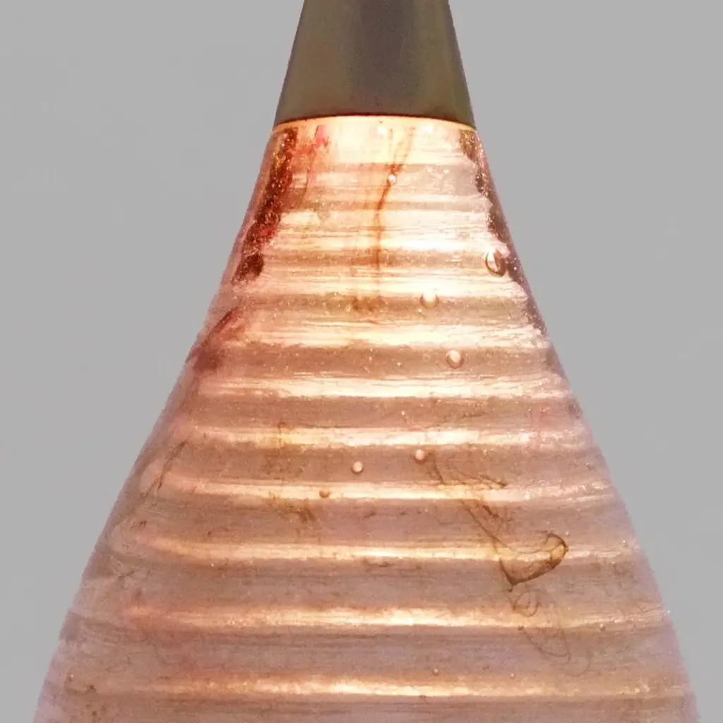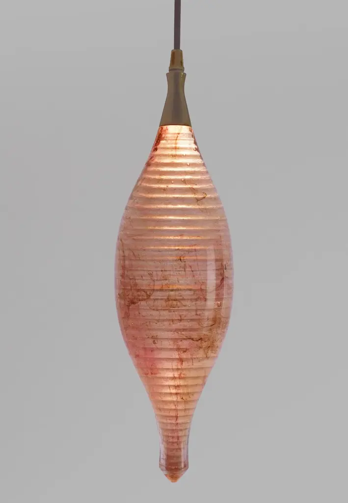 This new lighting collection is cast in optic crystal and inspired by A.M. radio waves and whirling motions of Sufi dancers. The dynamic between the inner and outer form encourages viewers to look both through and at the surface of the glass with its waves and striations of colour. The pieces are made using an ancient glass casting technique called core casting. The colour way of each suspended light is unique due to the nature of the movement of glass within the cast mould.Lit by a micro LED marker contained within the bronze mount the light sparkles through hundreds of tiny bubbles creating a glowing ambience that is reflected from within by the delicate textures and waves of the core.When viewed together, each group of pendants creates a story of alchemy, texture, and energy that can harmonize with their setting whether it be austere or luxurious.Each piece is cast in the studio of Max Jacquard Glass on the Greensand Way in Kent, England. Max's experience in cast glass spans the length of 30 years and he is known for his innovative and tasteful approach to cast glass that is based in historical methods and contemporary practice. Core cast in Optical Lead Crystal with Bronze mount, hand polished.Dimensions:Semazen Pendant: 400mm height x 110mm diameter. Weight 2.7kgColours are customizable. Shown here from left to right: Topaz/BrownBrown/Amber blackAmethyst/AquamarineRose/Topaz with Copper dusting interiorBrown/Topaz with Gold dusting interiorMade to orderLead-time 4-8 Weeks.