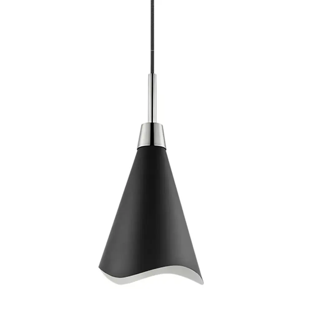 Ninotchka, black pendant lamp by Bent KarlbyEditor: LYFASize : H 35 x W 19,5 x D 17 cmMaterials : Steel3m textile cord black or white, depending lampshade colorLight source (Not included)Socket: E27Max wattage: 60 WattEnergy class: The luminaire is compatible with bulbs of energy classes A++ – DRecommended light source: Philips LED 10.5W - 1521 lumen--NINOTCHKA is a genuine and easily recognizable design icon, designed by Bent Karlby in 1954. When giving shape to this lamp, Bent Karlby had taken note of an eye-catching hat, worn by the Swedish Hollywood star Greta Garbo in her 1939 film, Ninotchka. The organic body with its asymmetric drapes ensures functional direct downlight and diffused ambient uplight.Bent Karlby is widely regarded today as one of Denmark’s most productive and versatile lighting designers of the 20th century. He started his collaboration with LYFA in the 1940s, which was a partnership that would last nearly four decades. Bent Karlby is known for his soft light, organic shapes and hallmark peepholes. During his career, Karlby moved more towards pure geometric shapes such as the cone, cylinder and arc along with playful colours as seen with the NINOTCHKA series.