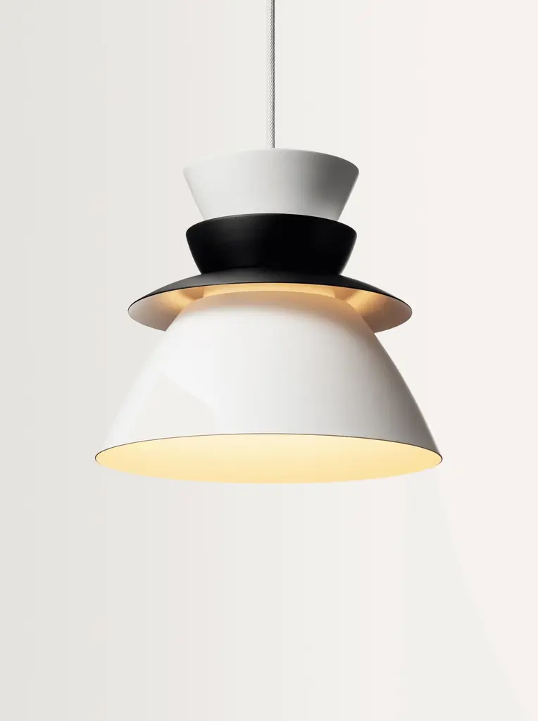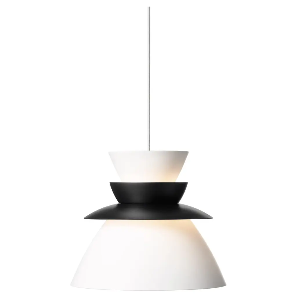 Sundowner, black pendant lamp by Jørn Utzon, LYFA.Size : H 15,1 x Ø 17,5 cm (3m white textile cord)Materials : Matt painted steelLight source (not included)Socket: G9Max wattage: 40 WattEnergy class: The luminaire is compatible with bulbs of energy classes A++ – DRecommended light source: Philips LED 4.8W - 570 lumen--SUNDOWNER is a classic pendant with a clean expression – relaunched in three sizes and four different colour combinations. The first SUNDOWNER pendants were produced as a flexible shade system in which the shades should be assembled on top of the light source. Today, the shades are fixed, which ensures a solid, high-quality pendant without compromising on the original design. Lyfa is a visionary home of iconic classics from some of Denmark’s most influential lighting designers. Our enduring designs explore and enhance good lighting in all its shapes and facets. The Lyfa collection is founded on pure aesthetics and a purposeful design philosophy shaped by decades of dedicated craftsmanship and captivating lighting designs. The design classics are crafted to impeccable quality standards and offer light arrangements for every home, occasion and situation.