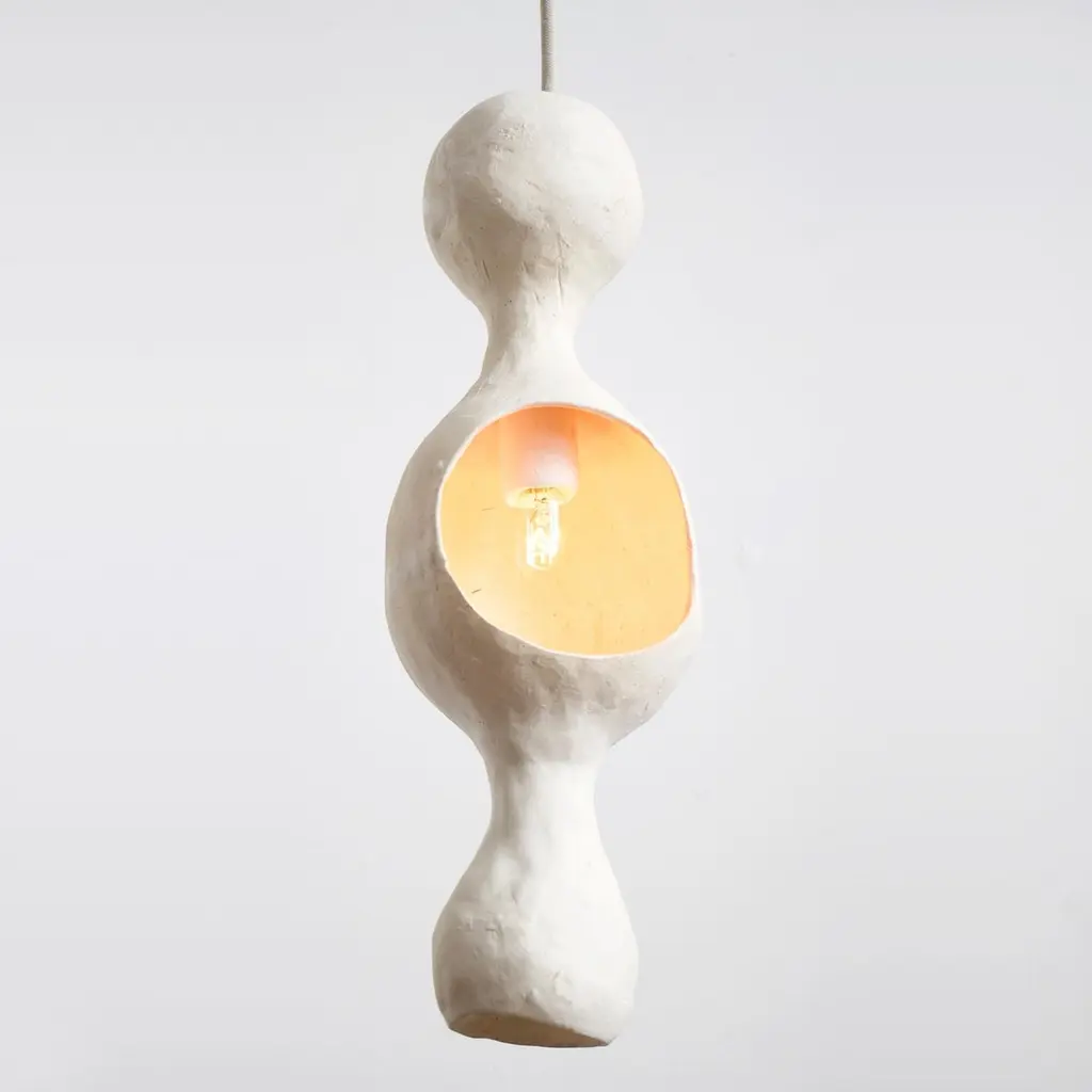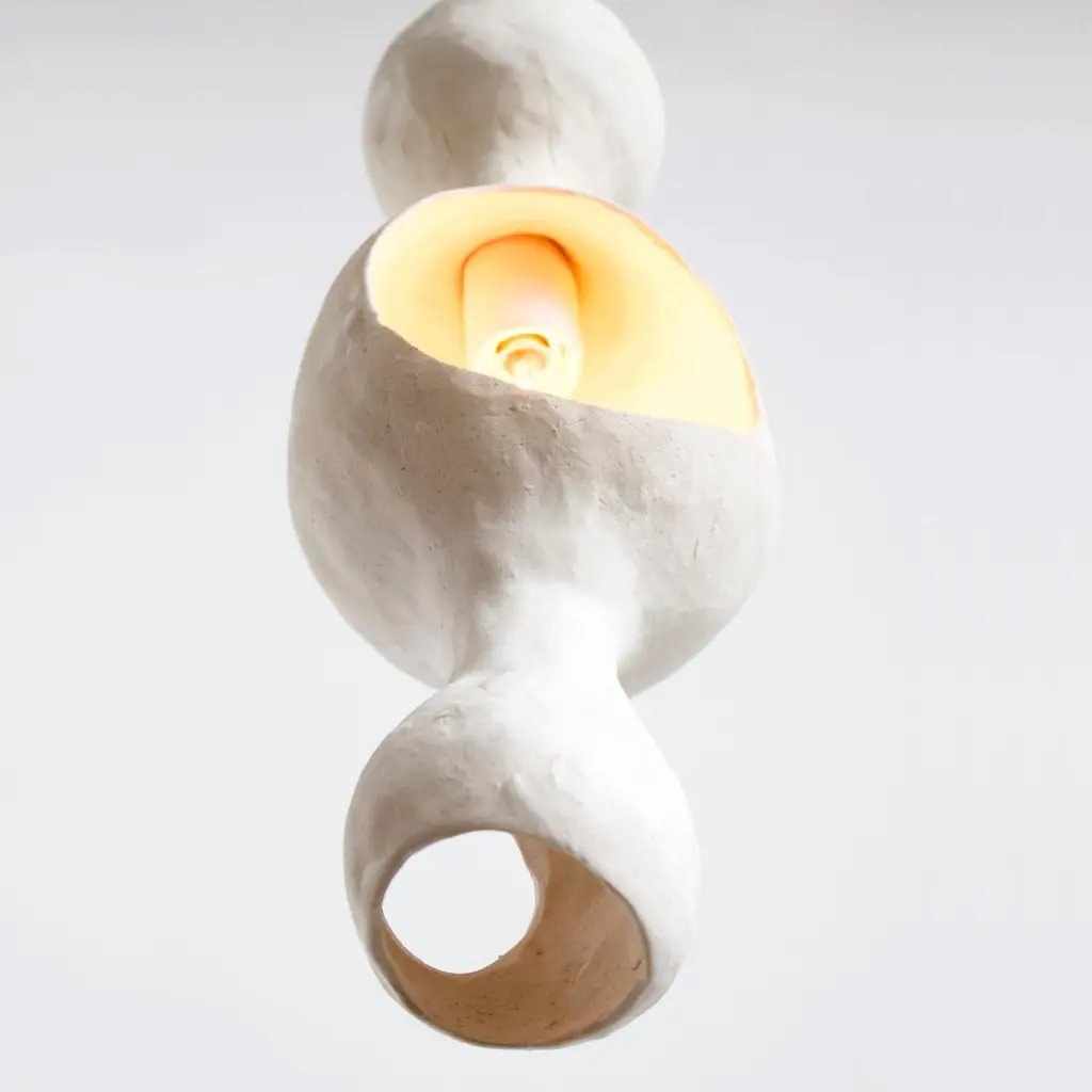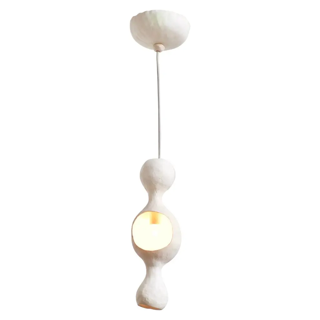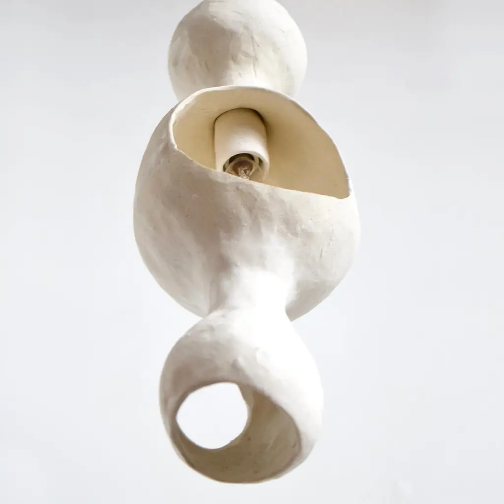 Contemporary Sculptural Hand-Built Double-Shell Matte White Ceramic Pendant Lamp