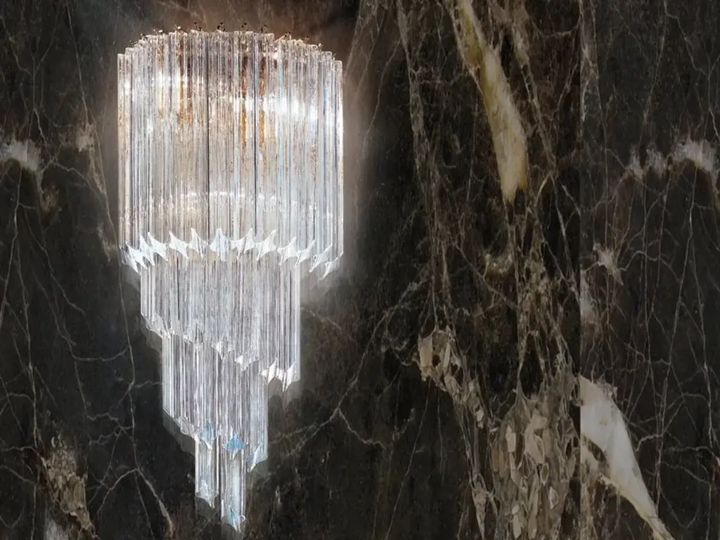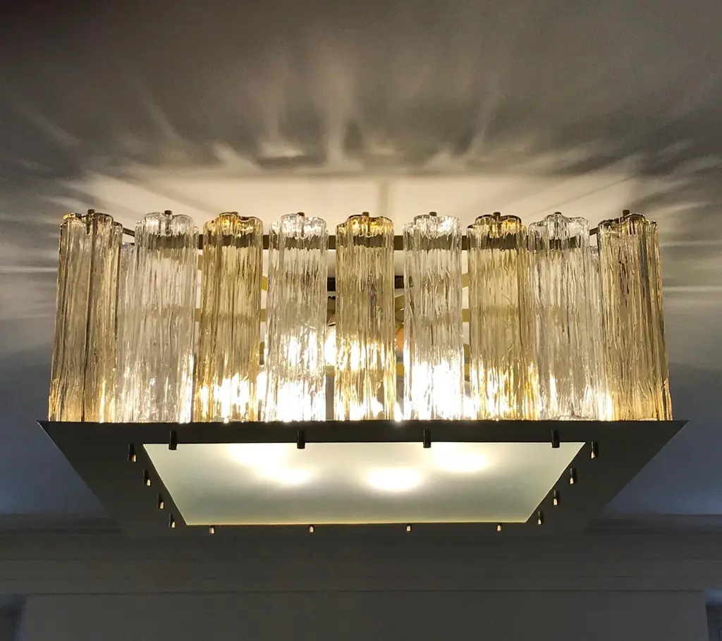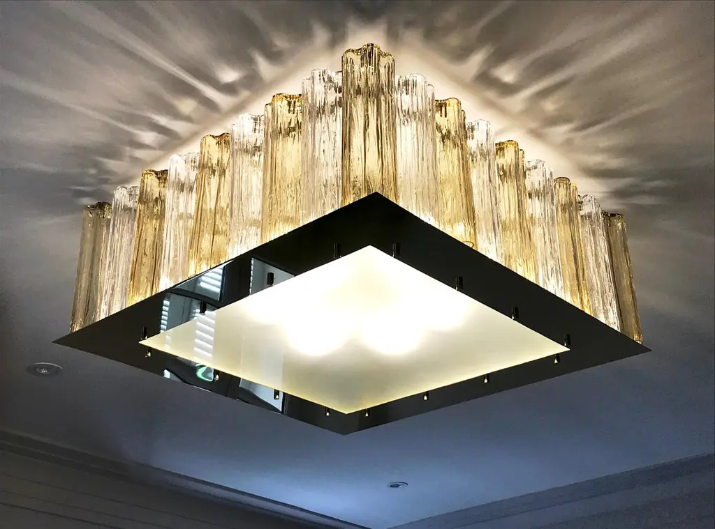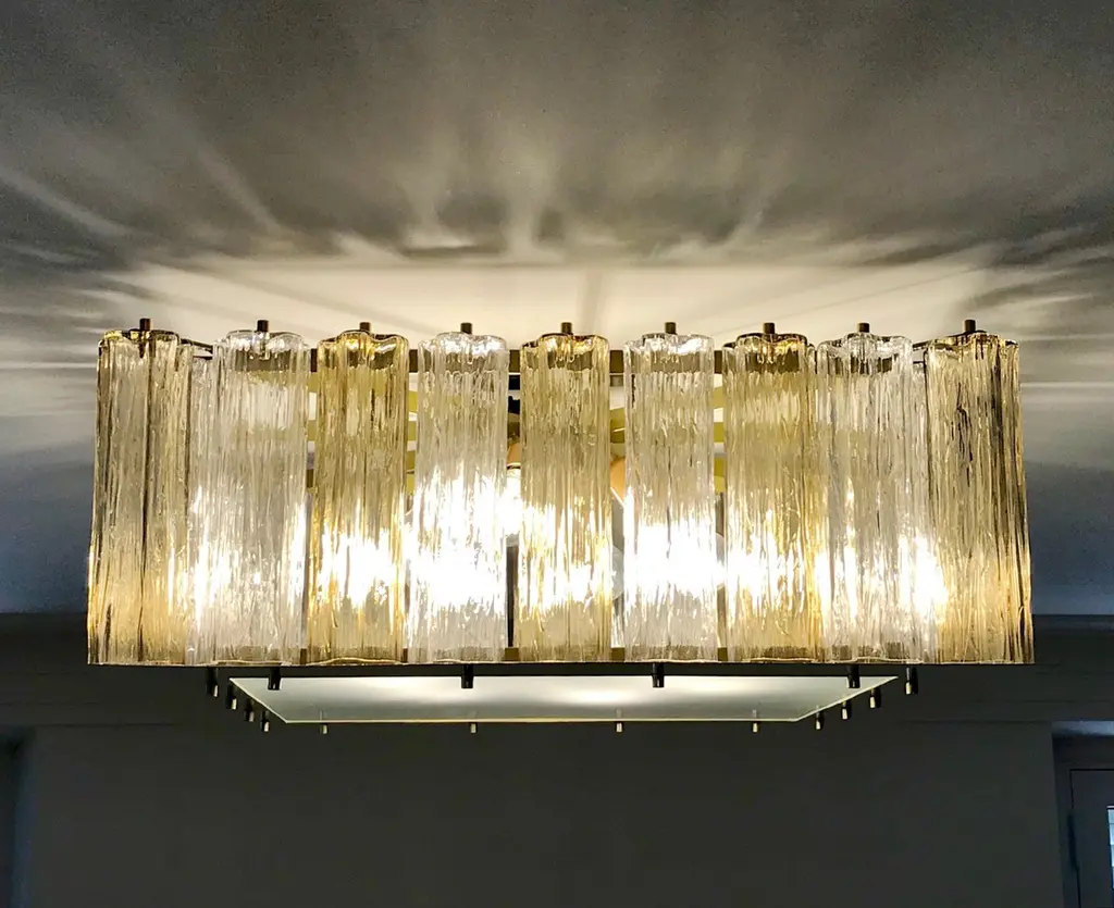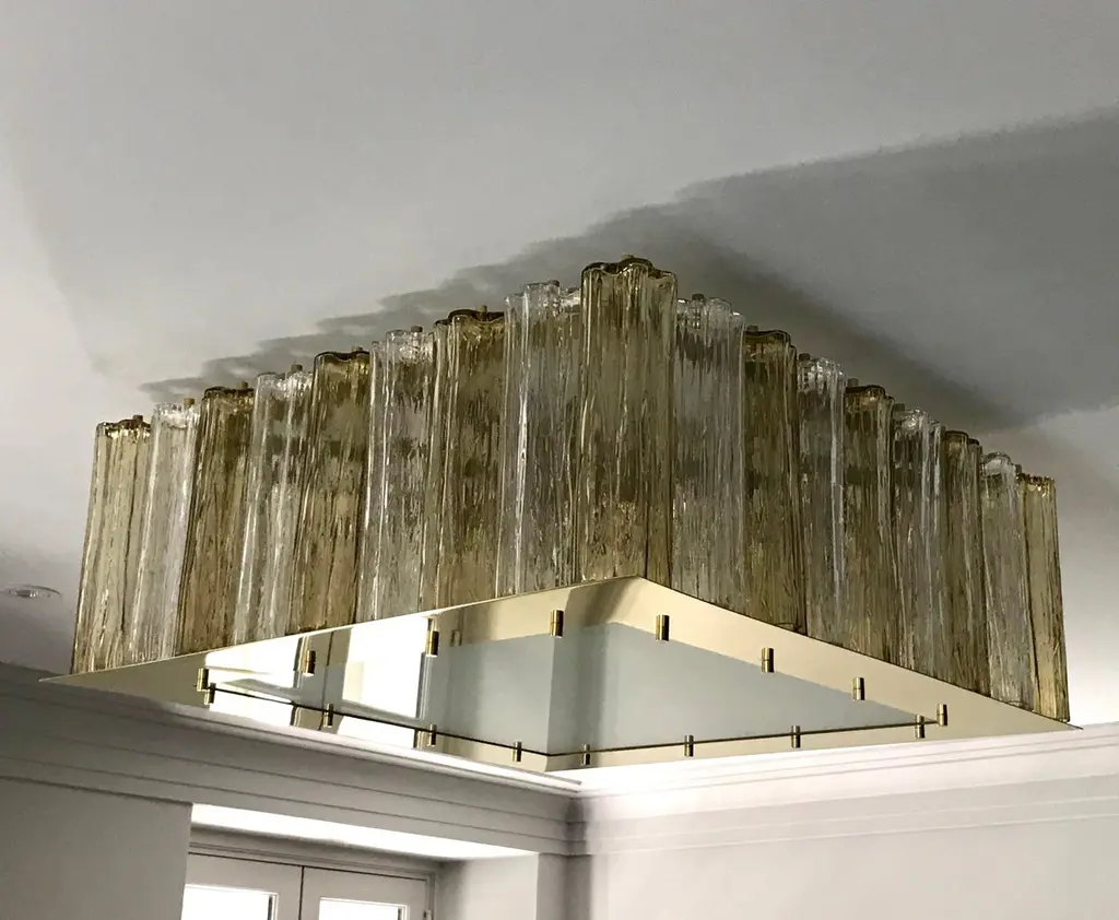 Contemporary Square Italian Crystal Amber Murano Glass Flush Chandelier/pendant