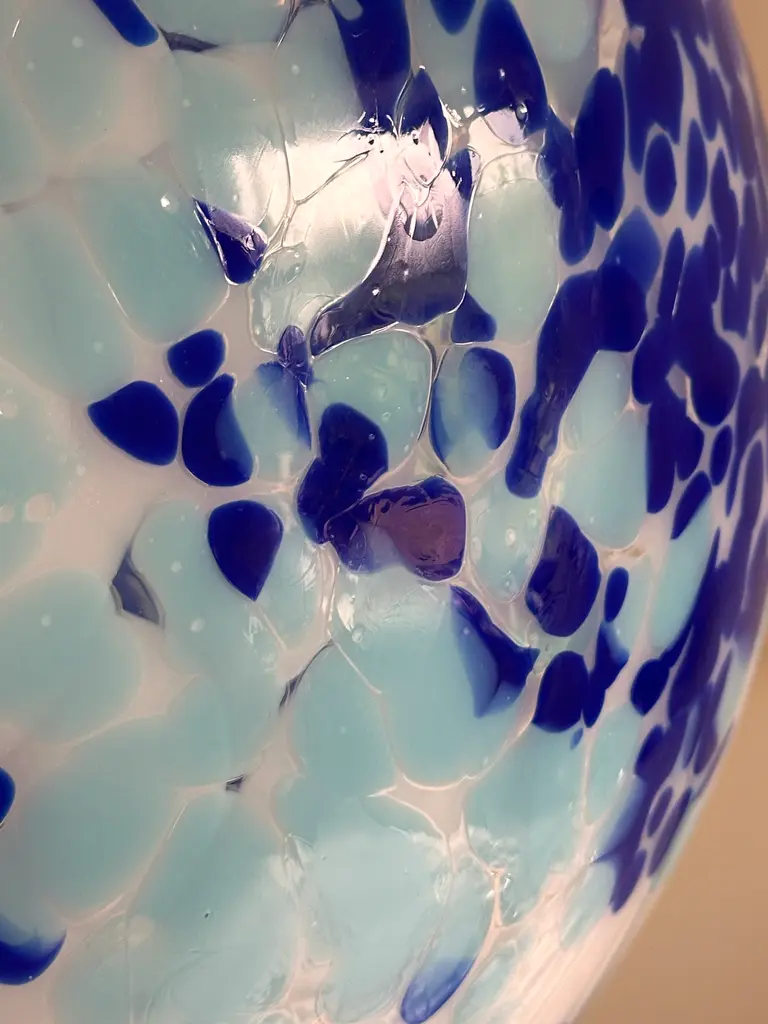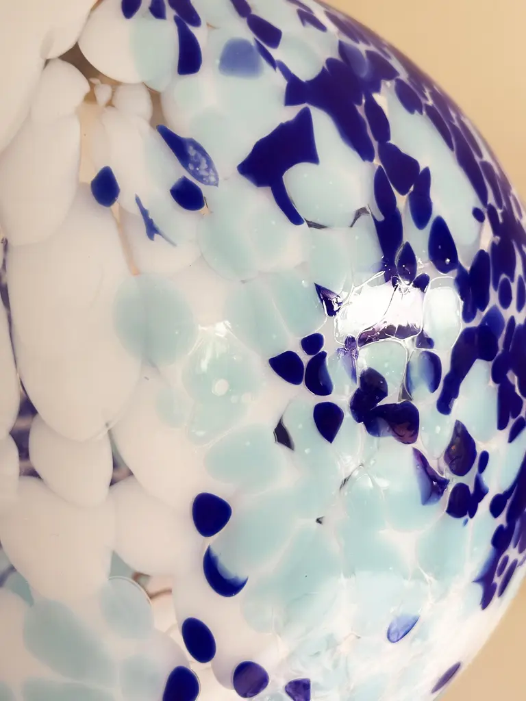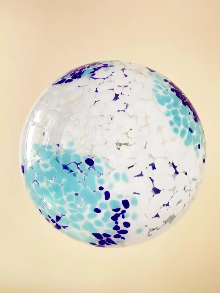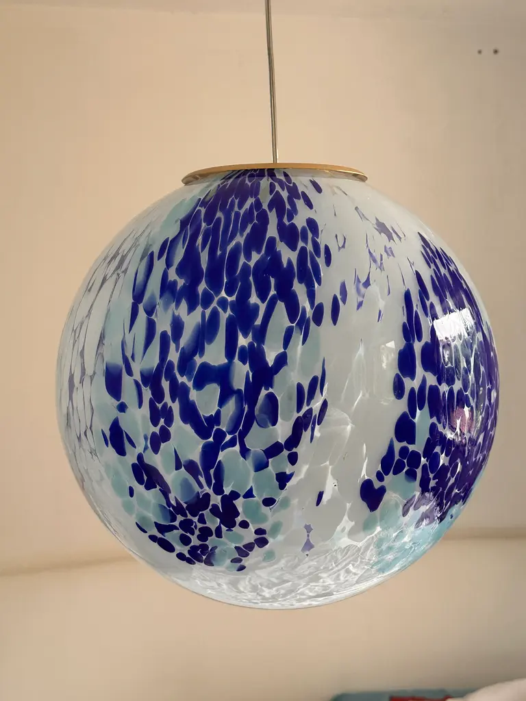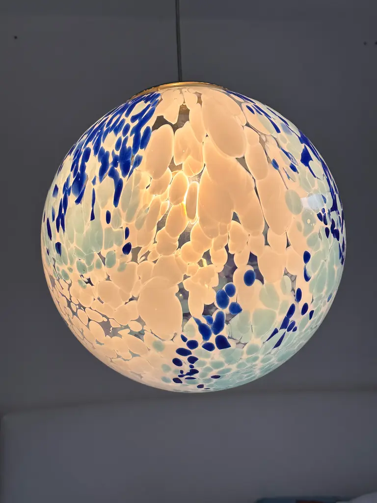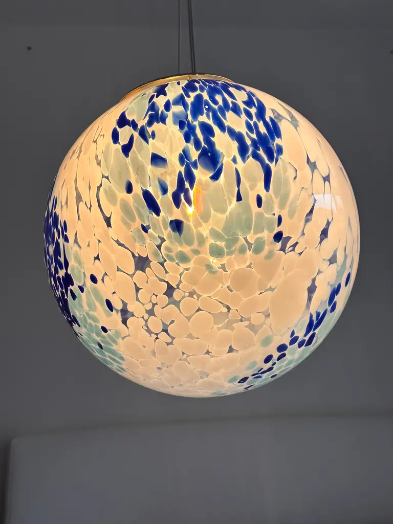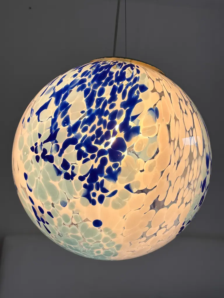 Contemporary White And Blue Spots Sphere Pendant Light In Murano Glass