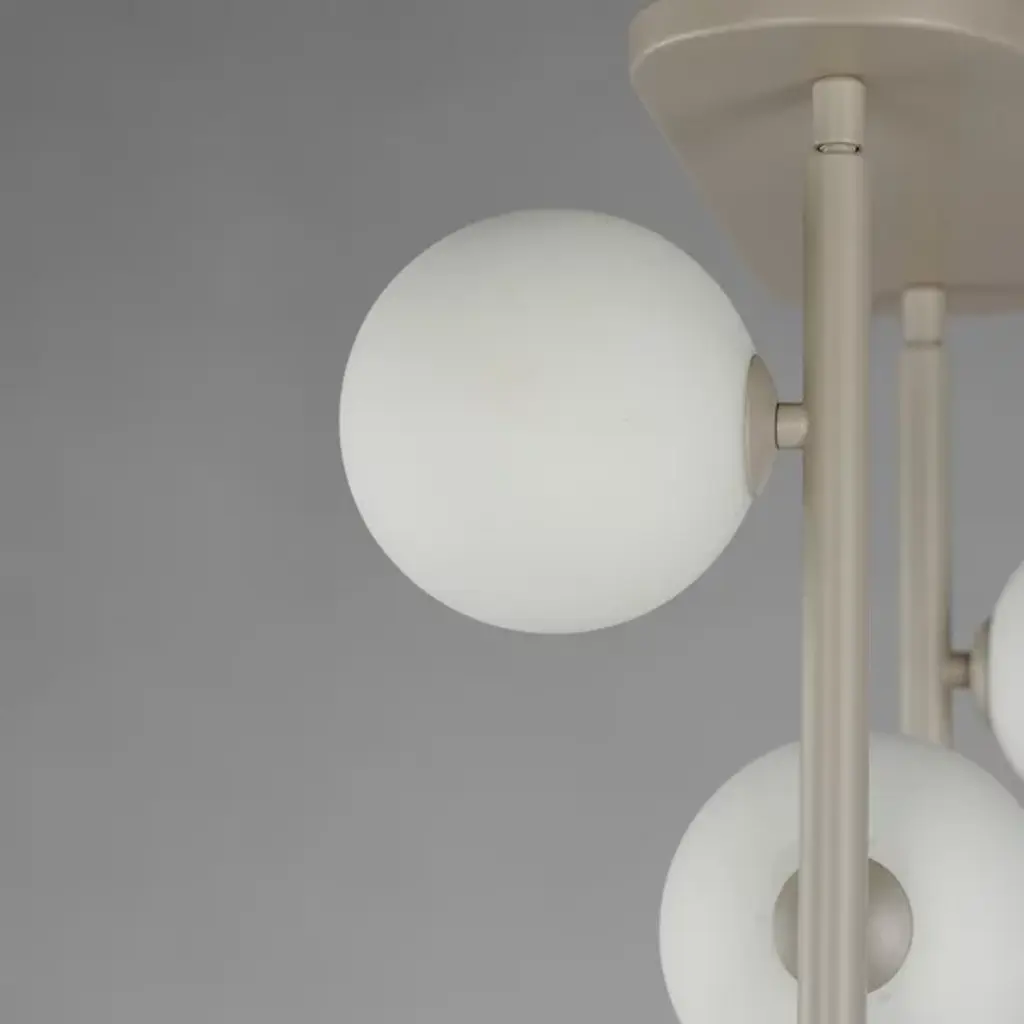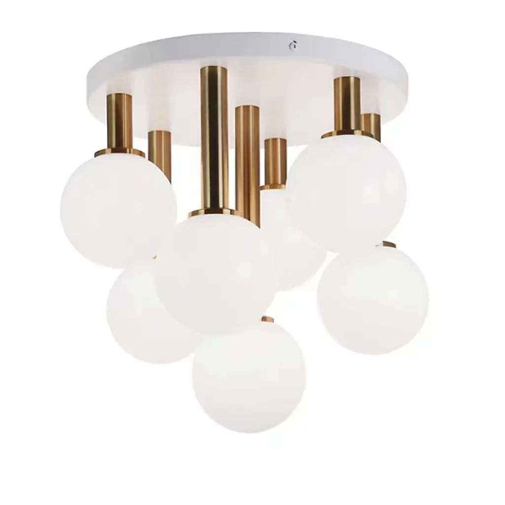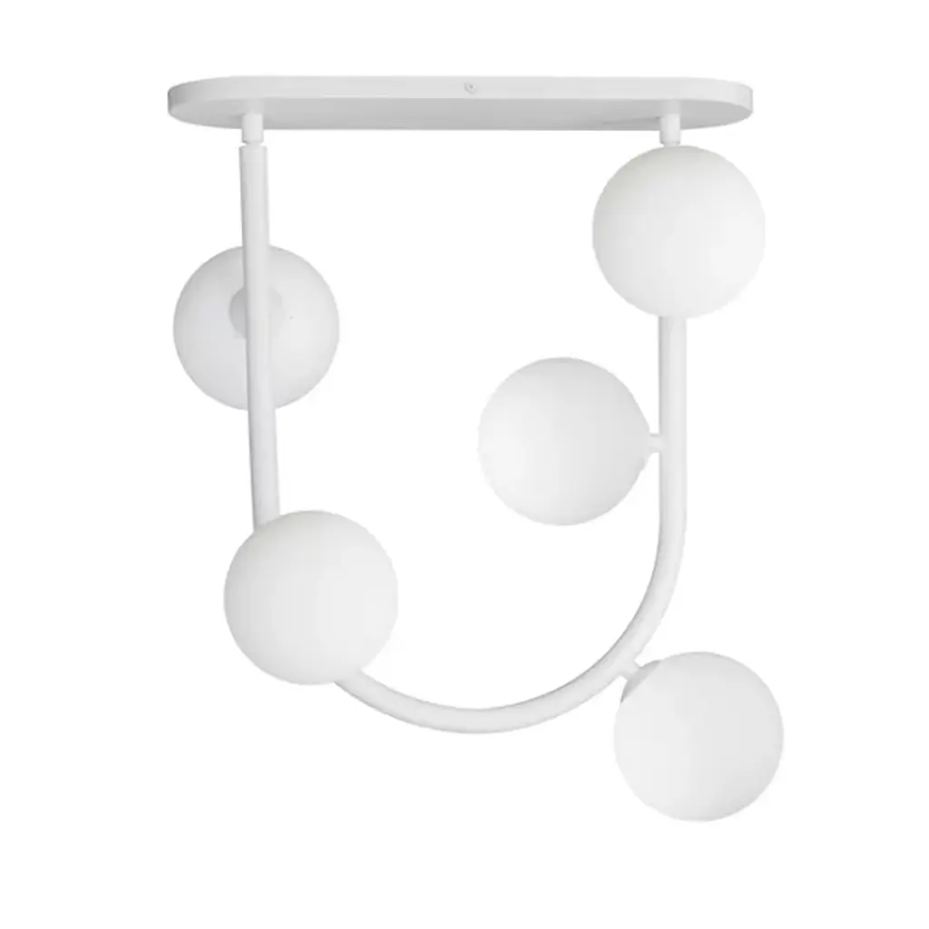 Soothing like a group of bubbles blown into the air. The eyes relax in the presence of the curve-outlined glow of the Contour LED Semi-Flushmount from Studio M. By using familiar forms, the piece creates a timeless aesthetic. Mounting with a low-profile canopy, the semi-flushmount keeps its design tight to slot in intimate settings. A steel contour swoops down to guide your eye from one delightful globe to the other. These glass globes create comfort by shielding one from LED glare. The globes appear weightless and in motion as golden LED light radiates from each.