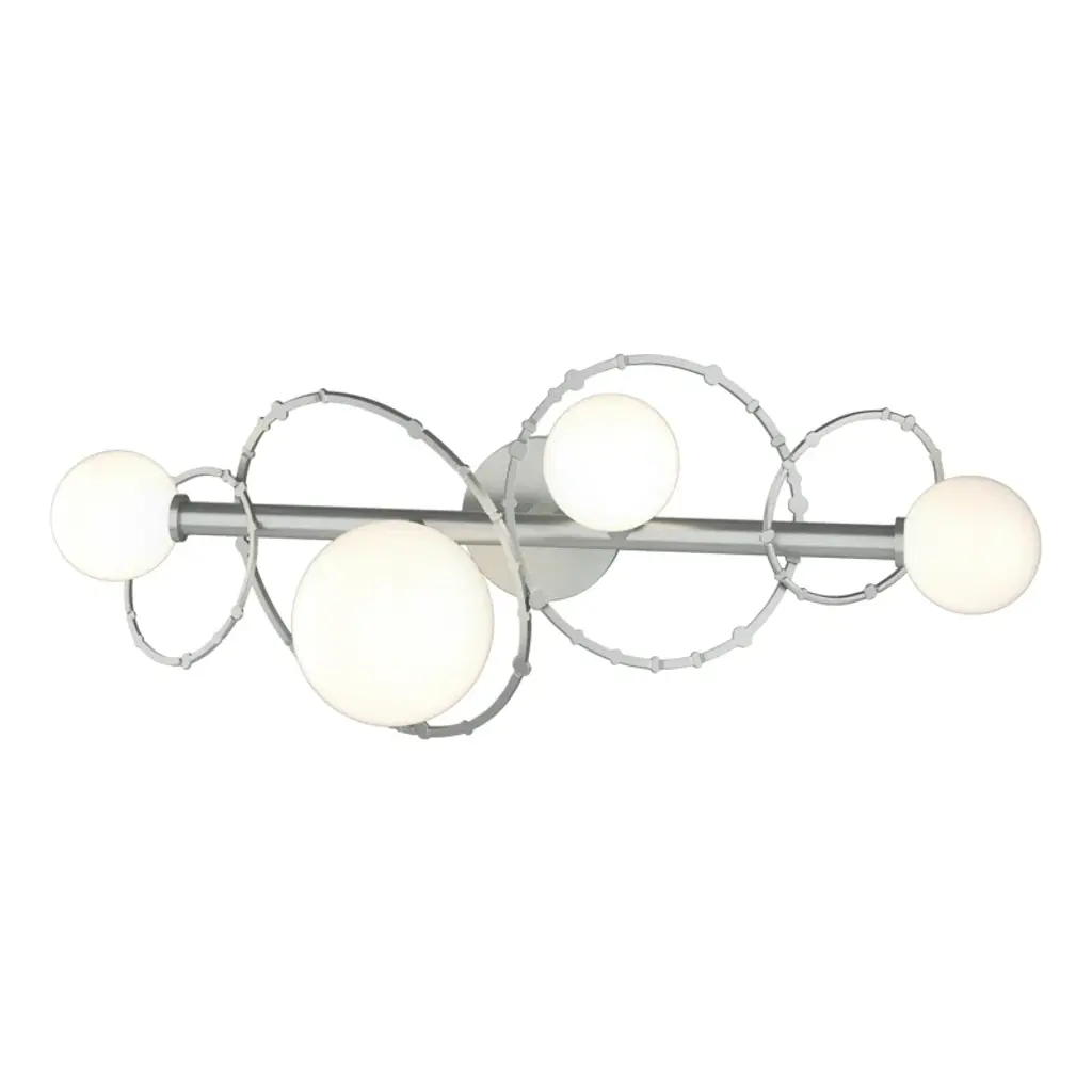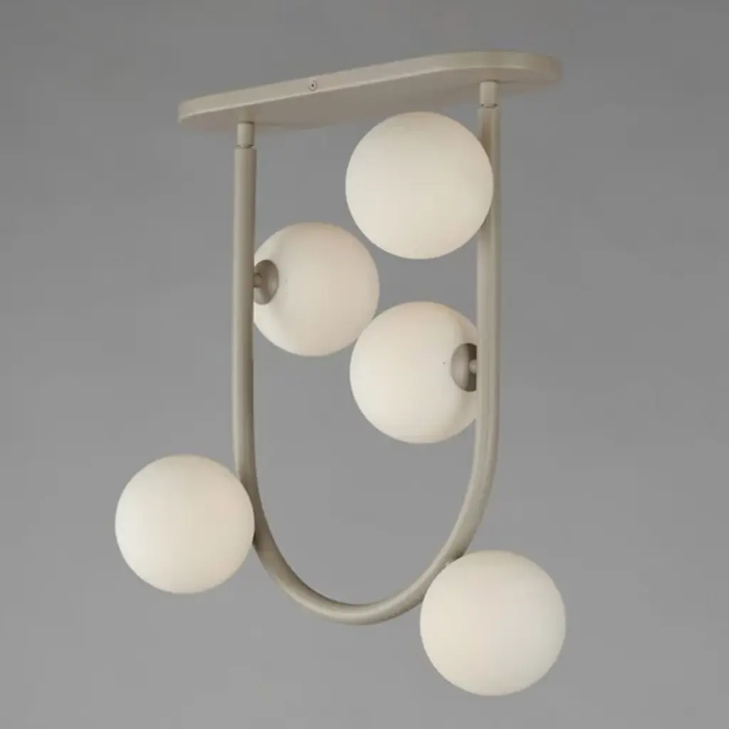 Soothing like a group of bubbles blown into the air. The eyes relax in the presence of the curve-outlined glow of the Contour LED Semi-Flushmount from Studio M. By using familiar forms, the piece creates a timeless aesthetic. Mounting with a low-profile canopy, the semi-flushmount keeps its design tight to slot in intimate settings. A steel contour swoops down to guide your eye from one delightful globe to the other. These glass globes create comfort by shielding one from LED glare. The globes appear weightless and in motion as golden LED light radiates from each.