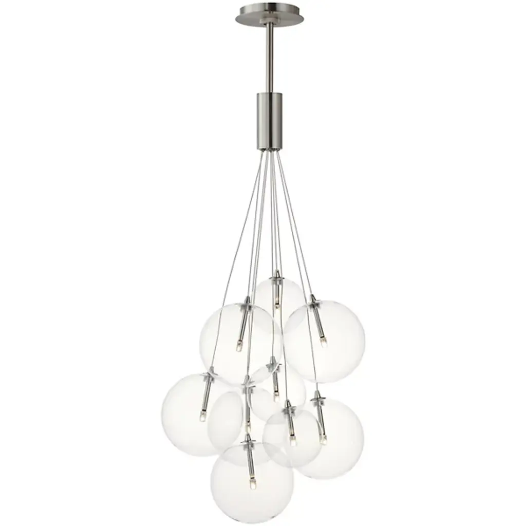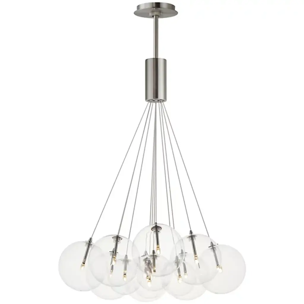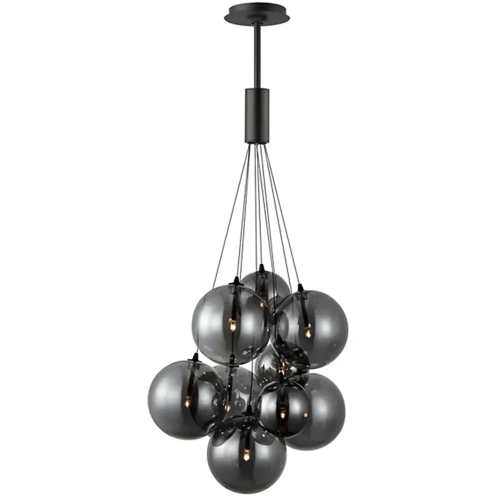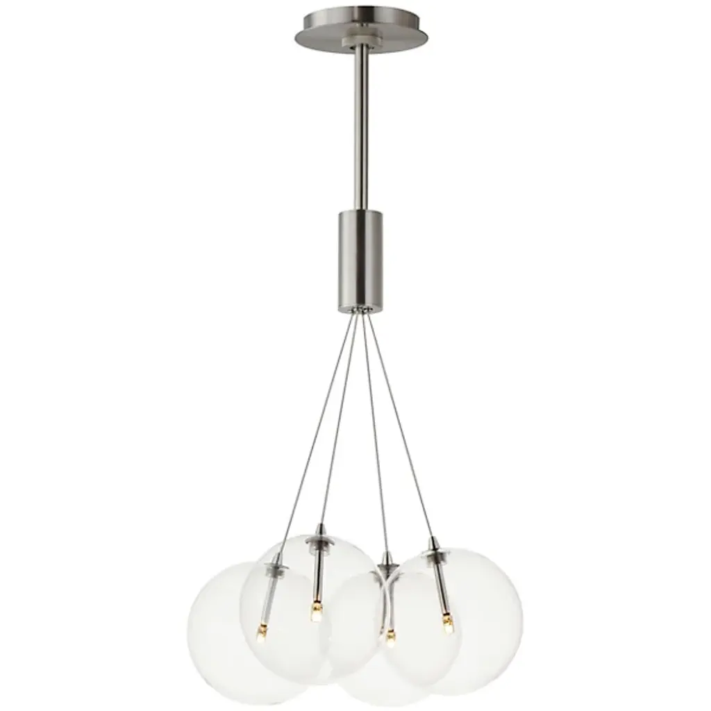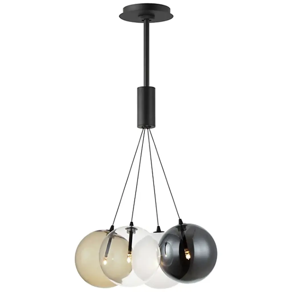The Copa Multi-Light Pendant from Huxe is a stunning blend of transitional style functionality. Crafted with care using durable steel, this pendant features captivating glass shades that form elegant globes, creating a visually intriguing ensemble. Copa Multi is designed with practicality in mind. This fixture is dimmable when used with an ELV dimmer, allowing you to customize the ambiance. Secured by a ceiling canopy, this pendant seamlessly integrates multiple LEDs in one fixture, providing luminous efficiency in your contemporary space