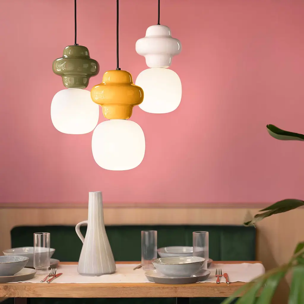A pendant featuring a sophisticated glass diffuser. This luminaire seamlessly combines modern design and functional illumination, casting a soft and ambient glow. The glass diffuser not only enhances the aesthetic appeal but also adds a touch of elegance, making it a versatile and stylish choice for various settings. This pendant stands as a tasteful statement piece, elevating the ambiance with its sleek and contemporary presence.