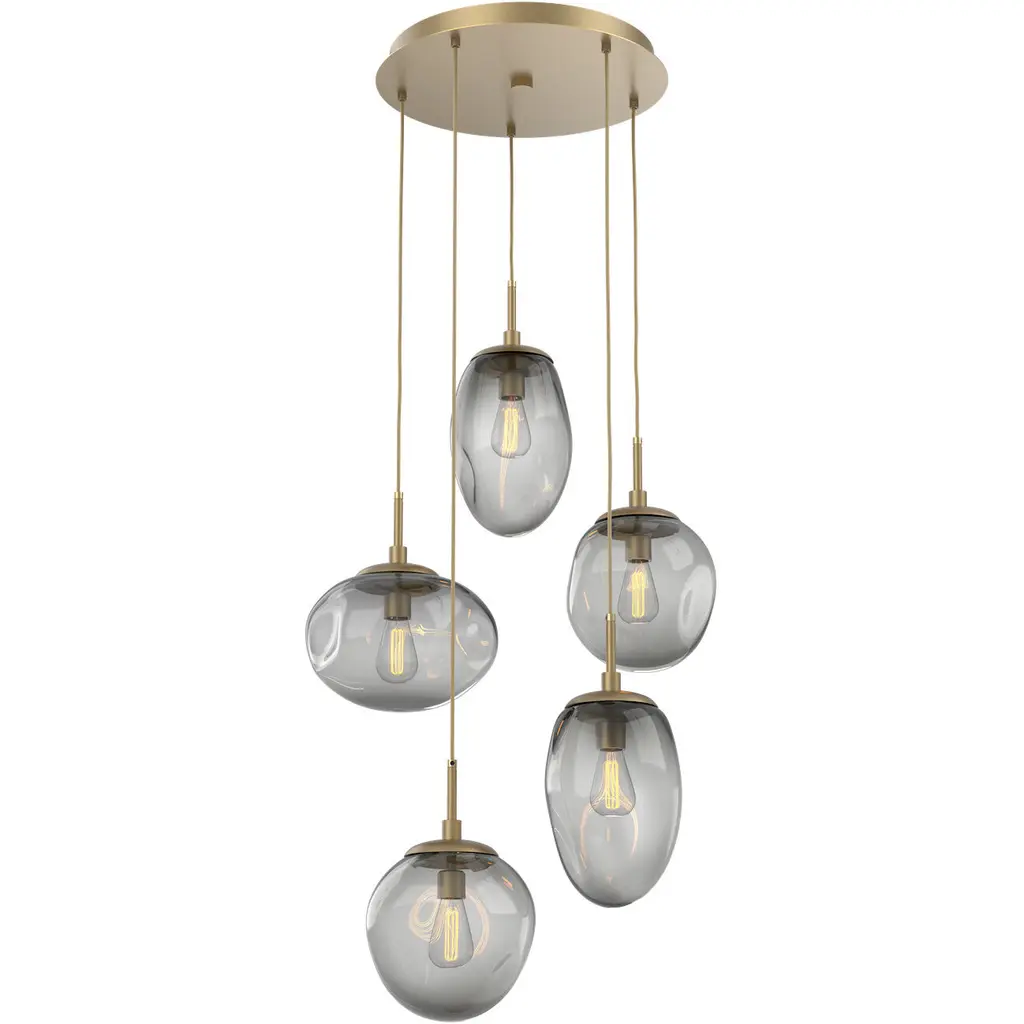 Coppa 5 Light Gilded Brass Linear Pendant Ceiling Light In Coppa Smoke, Multi-Port