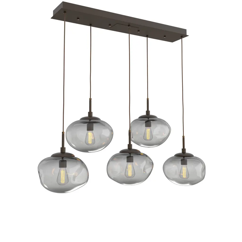 Coppa 9 Light Flat Bronze Linear Pendant Ceiling Light In Coppa Smoke, Multi-Port