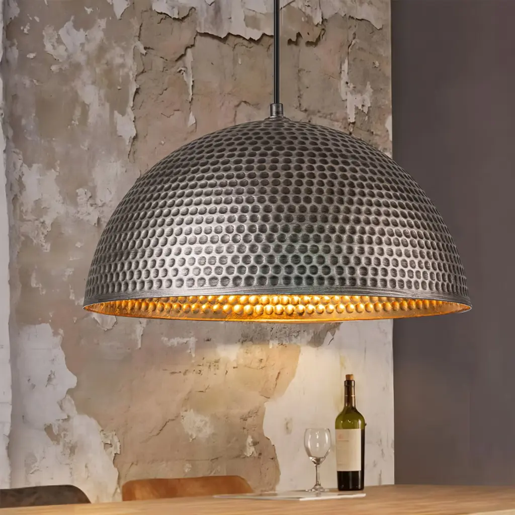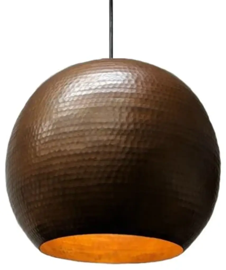 Copper pendants are sturdy, versatile, and fit into designs from rustic all the way to contemporary settings. This elegant hand hammered copper pendant light in Café Natural will compliment most any décor, particularly if you already have one of our copper sinks or plans to get one! Depending on your preference, individual pendants can hang level at the same height, or be staggered. Globe pendants look stunning alone or can be arranged in series of different sizes and colors.All copper pendants are sealed with Permalac® protective clear topcoat to extend the life and luster of our beautiful copper pendants. Copper has excellent corrosion resistance. As one of the few metallic elements with a natural color other than gray or silver, copper is a fine choice for anyone that wants to add a pop of color to any room.Extra Small: 8" Diameter ($295 per pendant)Small: 10" Diameter ($315 per pendant)Medium: 12" Diameter ($375 per pendant)Large: 14" Diameter ($450 per pendant)Extra Large: 16" Diameter ($525 per pendant)Our lights are wired here in the United States using UL listed parts. Each comes with a pre-installed standard light socket (accepts a 60w bulb or LED equivalent. Not included.), up to 5 ft. of field adjustable black cord (which can be trimmed to length) and 4.5" copper canopy. All SoLuna Copper Pendant Lights are patinaed on the inside with the same proprietary as shown on the outside of these pendants. Images show copper pendant illuminated with 60w light bulb, not included.Permalac® coating seals and protects copper patina4.5" Round Copper Canopy Included – in the finish selected for your pendant5' Site Adjustable Black Cable Included – Note: We only offer Black Cable with this pendantLamping: Standard medium base socket – We recommend a Flood Style Bulb for the larger sizesFree shipping to the lower 48 states
