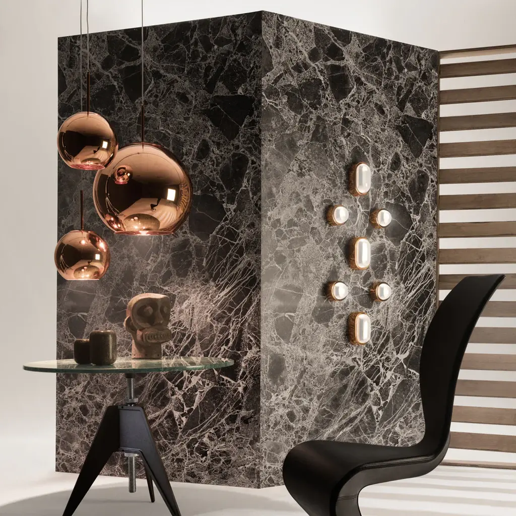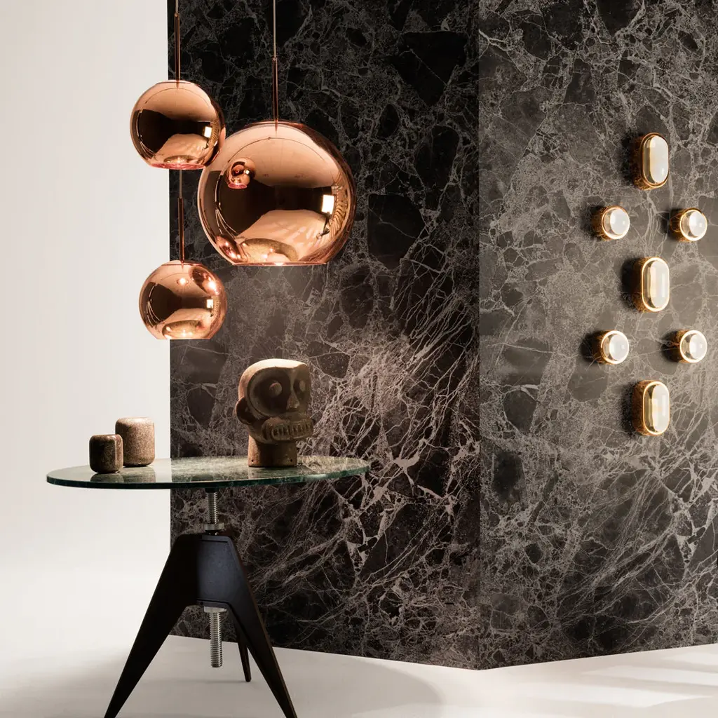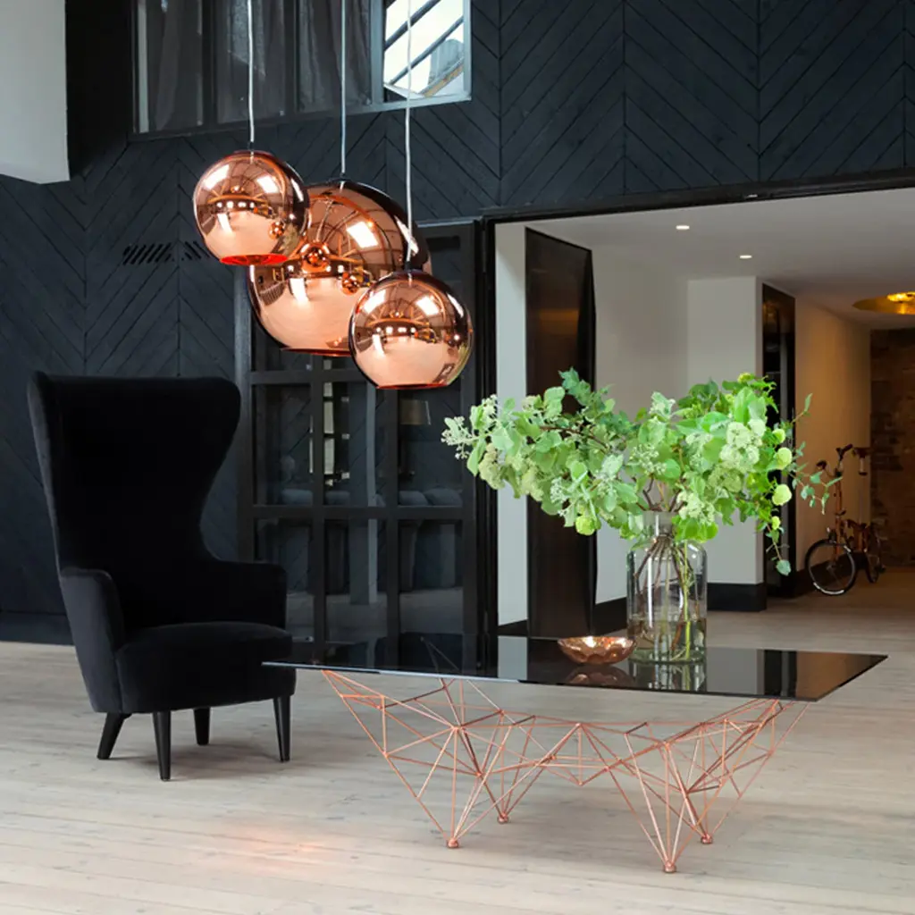 Intended to create an extravagantly proportioned spotlight that could warm the greenish hue of early LEDs and create a more appealing luminosity, Copper shade is an over-sized, blow molded and perfectly reflective globe that kick started the recent craze for copper in interiors the world over.