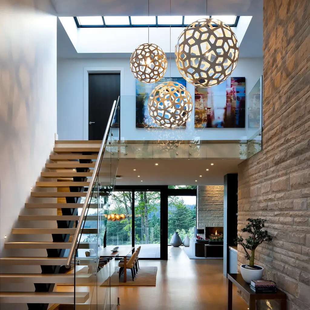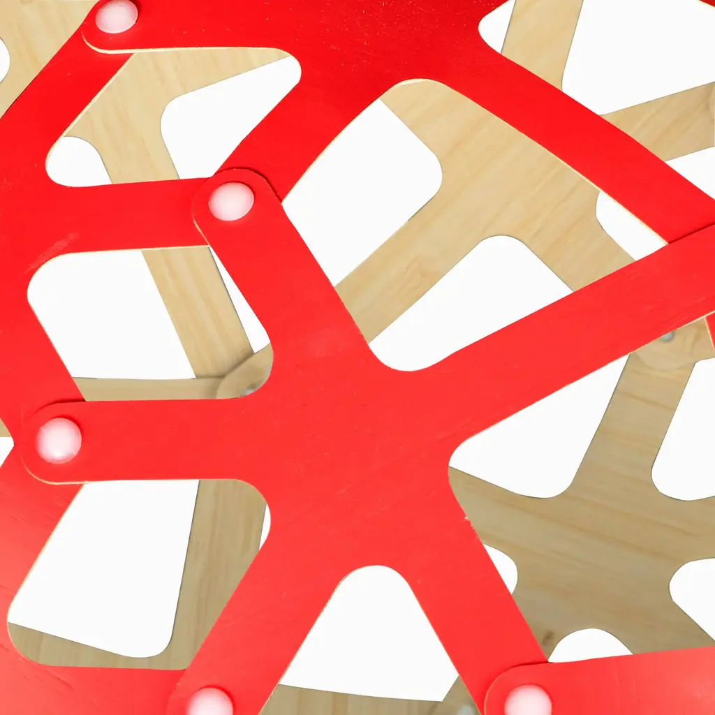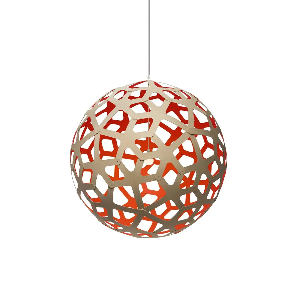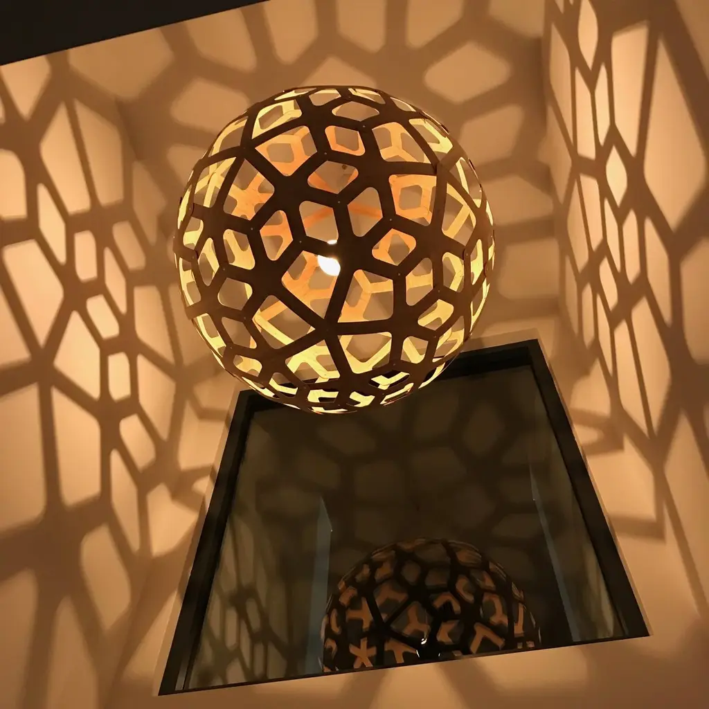 The "fingers" of the geometric polyhedron structure of this lamp are reminiscent of the coral reefs David Trubridge explores off the coast of New Zealand. A love for earth drove the construction, flatpacked to reduce freight and packing resources. Identical pieces make home assembly a snap. The celebrated designing craftsman ended up in his adopted home after he, his wife and their two sons sold everything and set off on a yacht for a world adventure. It culminated in 1985 when they decided to remain there. While an artist-in-residence at Hawkes Bay Polytechnic (now EIT), he built a house and suddenly found himself with further commissions. Before realizing homes, lamps and furniture, David left Newcastle University in 1972 with a degree in Naval architecture. His work has appeared in countless museums, including the Victoria & Albert and the Pompidou Centre. That barely scratches the surface of his fascinating story and work ethos.