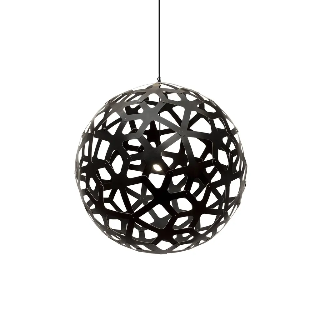 The "fingers" of the geometric polyhedron structure of this lamp are reminiscent of the coral reefs David Trubridge explores off the coast of New Zealand. A love for earth drove the construction, flatpacked to reduce freight and packing resources. Identical pieces make home assembly a snap. The celebrated designing craftsman ended up in his adopted home after he, his wife and their two sons sold everything and set off on a yacht for a world adventure. It culminated in 1985 when they decided to remain there. While an artist-in-residence at Hawkes Bay Polytechnic (now EIT), he built a house and suddenly found himself with further commissions. Before realizing homes, lamps and furniture, David left Newcastle University in 1972 with a degree in Naval architecture. His work has appeared in countless museums, including the Victoria & Albert and the Pompidou Centre. That barely scratches the surface of his fascinating story and work ethos.