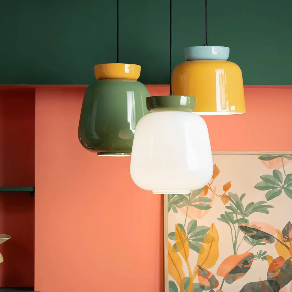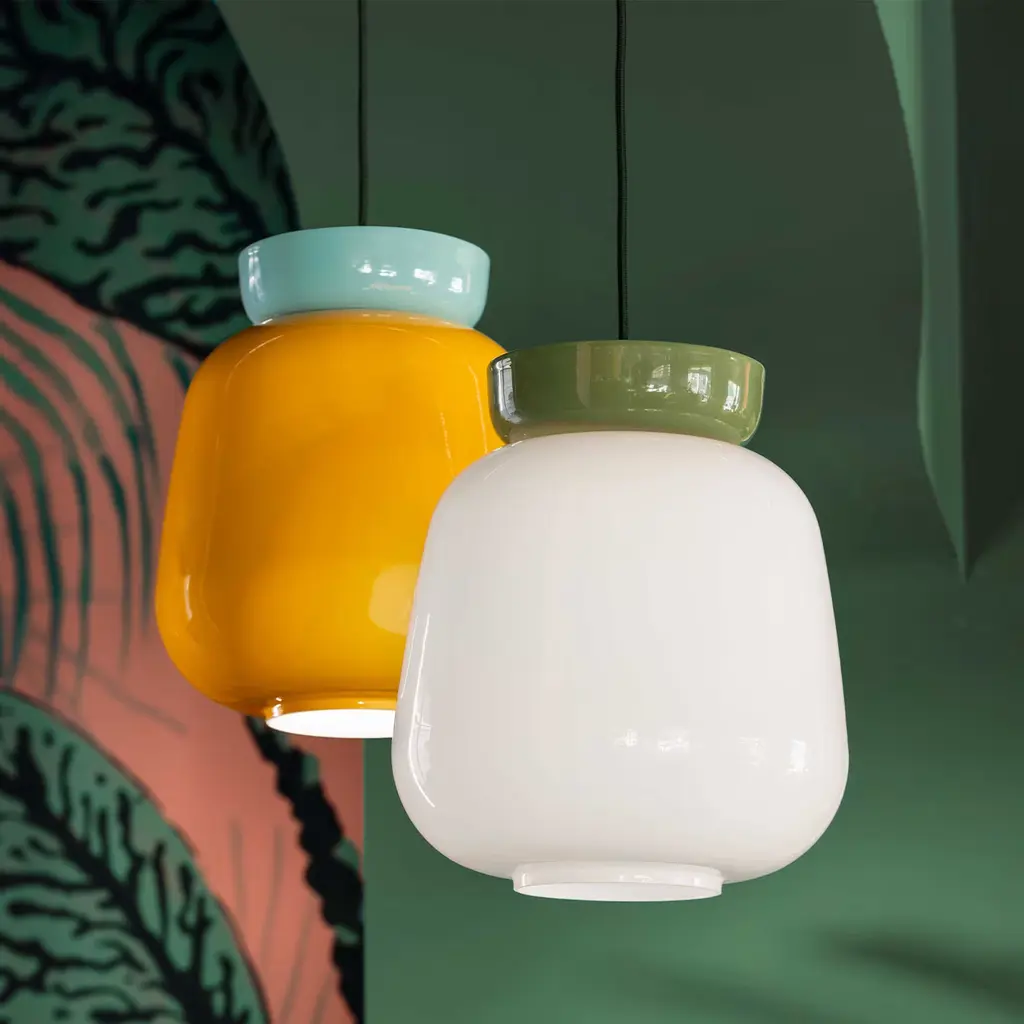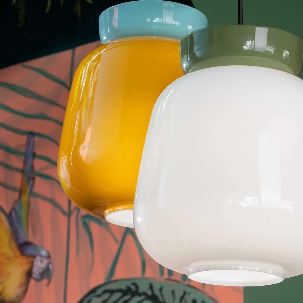 A pendant boasting a 29 cm diameter, adorned with painted glass for a captivating visual effect. This luminaire combines a generous size with artistic detailing, creating a statement piece that not only illuminates but also enhances the aesthetic appeal of its surroundings.