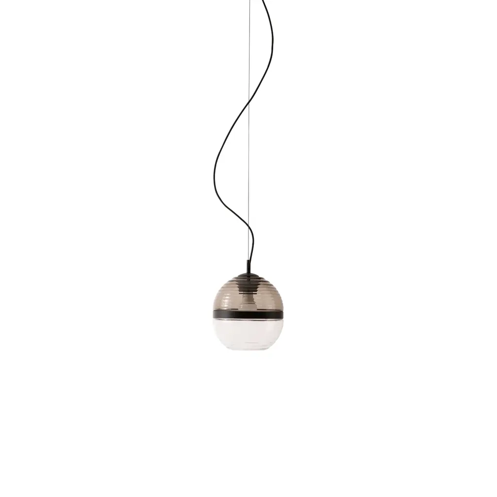 Experience the perfect balance of past and present with the Cord Pendant Light from Cappellini. Designed by Werner Aisslinger, this modern lamp features a two-tone blown glass sphere with an embossed metal ring in a matte black finish. Expertly crafted by glassmakers, the alternating colors and transparencies provide warm, enveloping light, perfect above a dining table or kitchen island. Elevate your space with this unique and elegant pendant light. Highlights