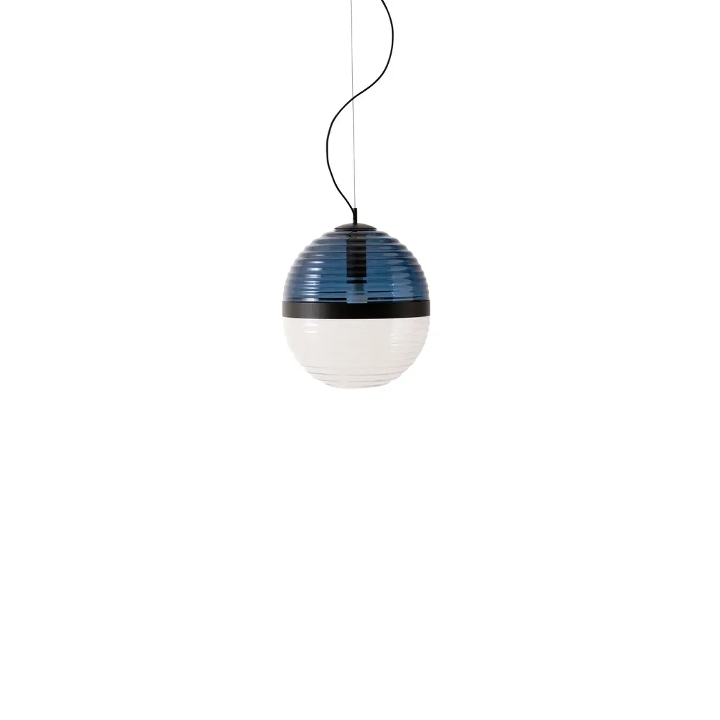 Experience the perfect balance of past and present with the Cord Pendant Light from Cappellini. Designed by Werner Aisslinger, this modern lamp features a two-tone blown glass sphere with an embossed metal ring in a matte black finish. Expertly crafted by glassmakers, the alternating colors and transparencies provide warm, enveloping light, perfect above a dining table or kitchen island. Elevate your space with this unique and elegant pendant light. Highlights