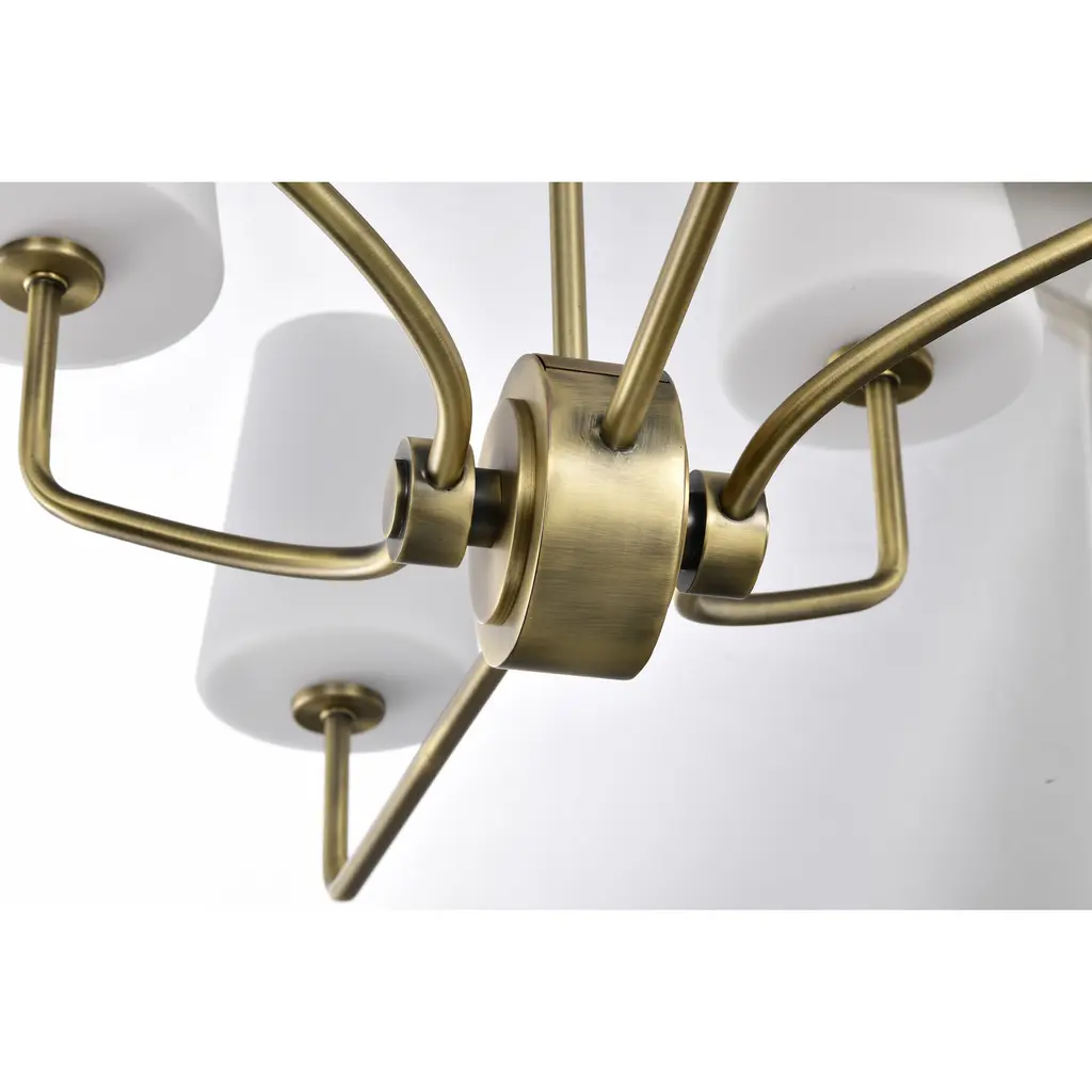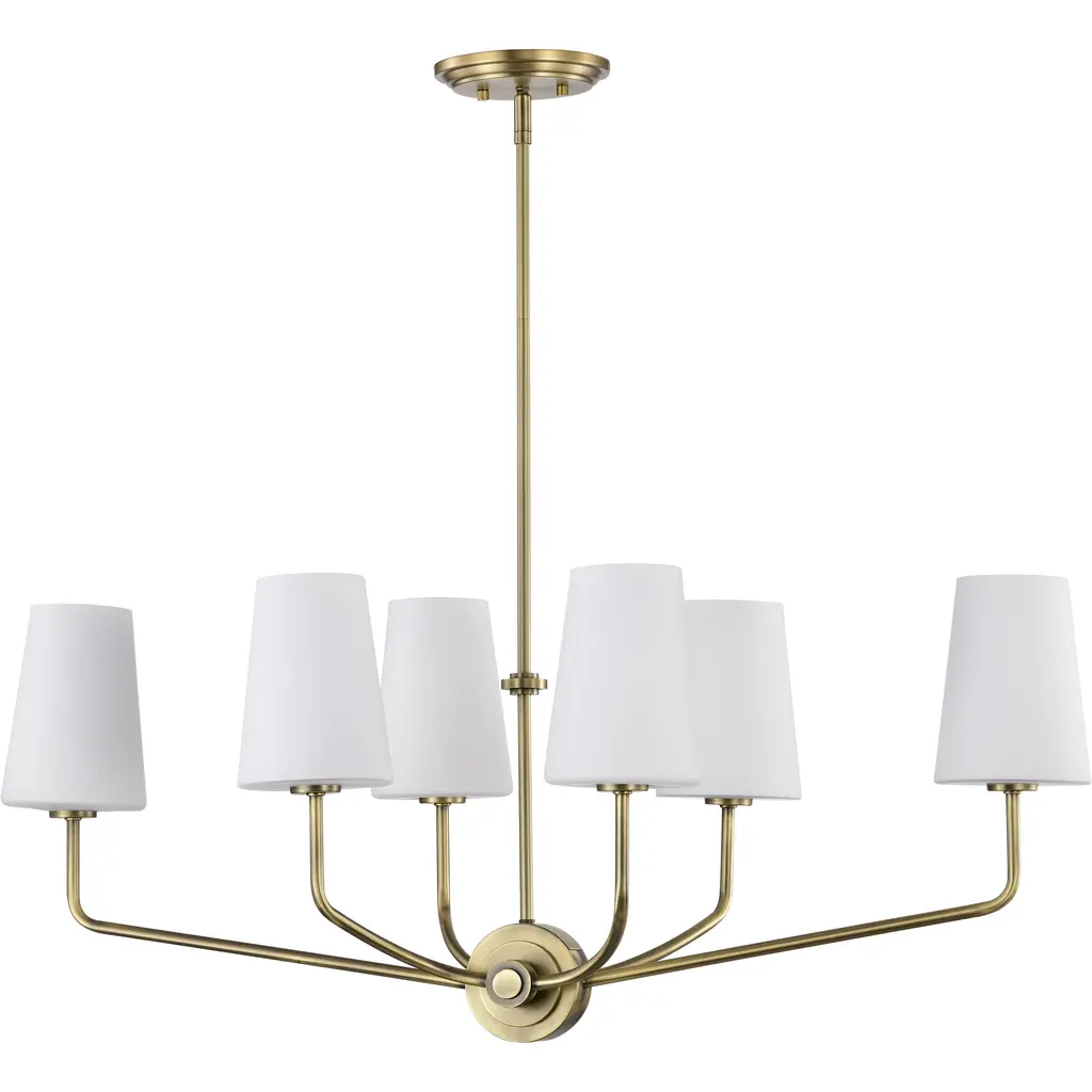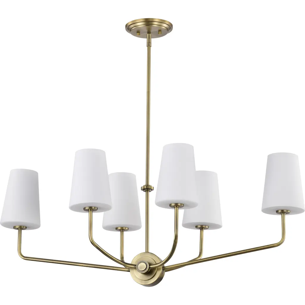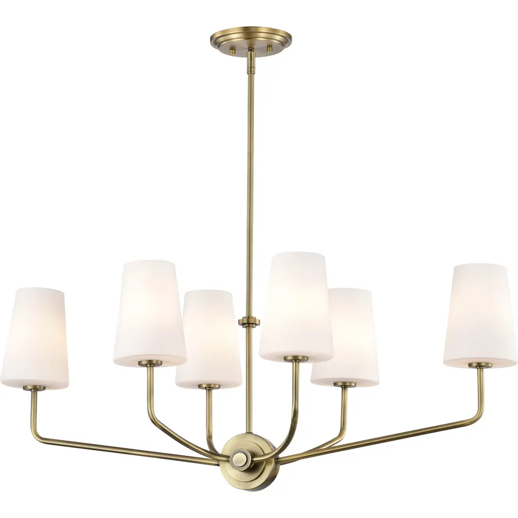 Cordello 6 Light Island Pendant; Vintage Brass Finish; Etched White Opal Glass