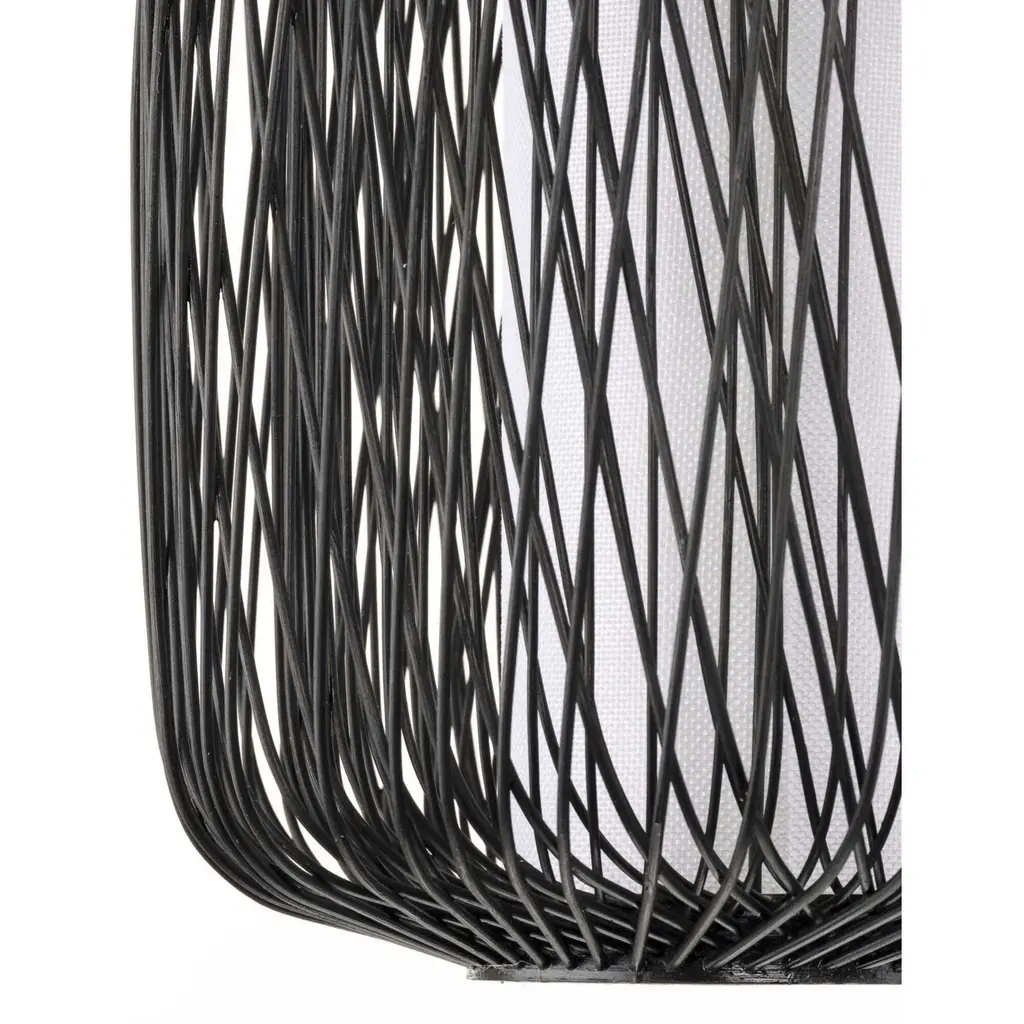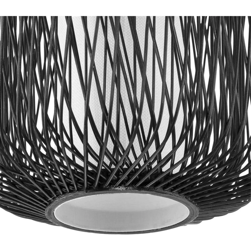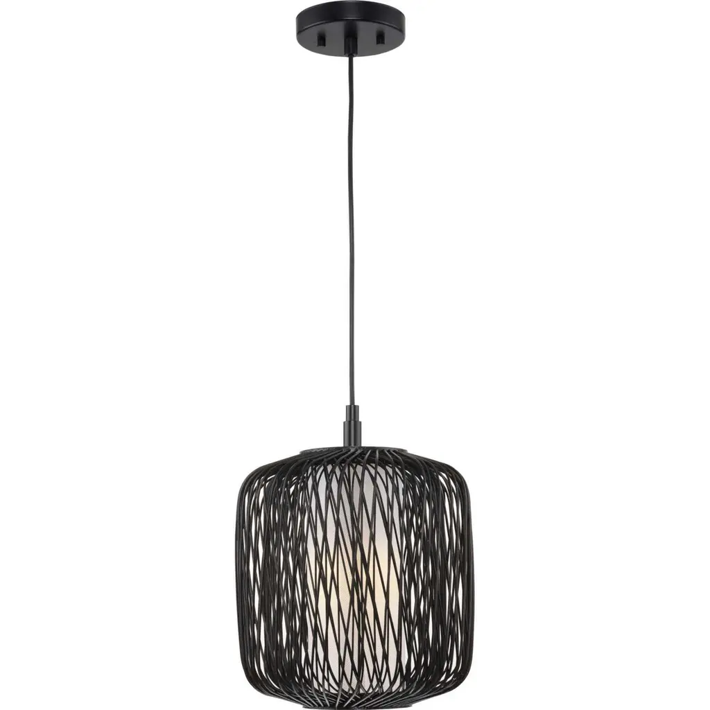 Modern organic style fuses with artisanal craftsmanship in the Cordova Collection. Inspired by the graceful interlacing of a bird's nest, its airy handwoven black rattan frame surrounds a textured fabric, white linen diffuser. Use this airy pendant as light sources on either side of a bed, or install singly or in multiples in bedrooms, over dining room tables or kitchen islands in global or organic modern interiors.