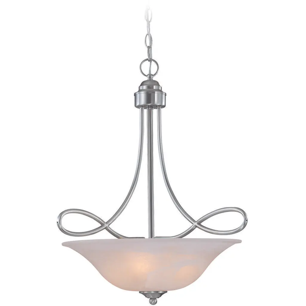 Cordova 3 Light 21 Inch Satin Nickel Pendant Ceiling Light In Faux Alabaster Glass