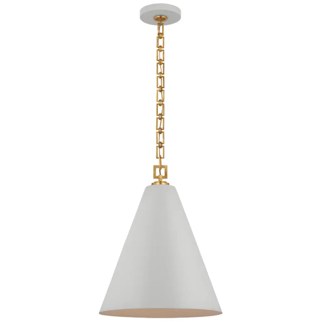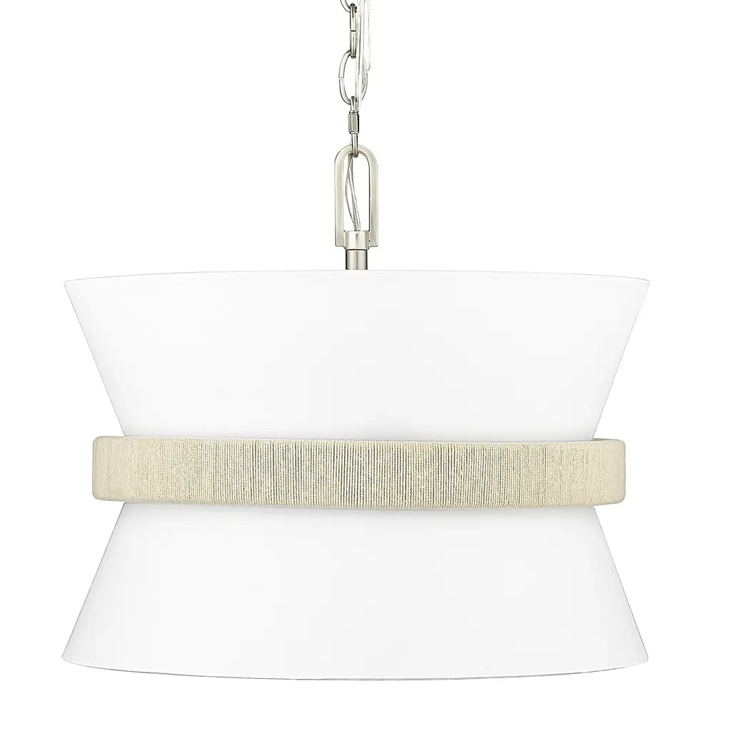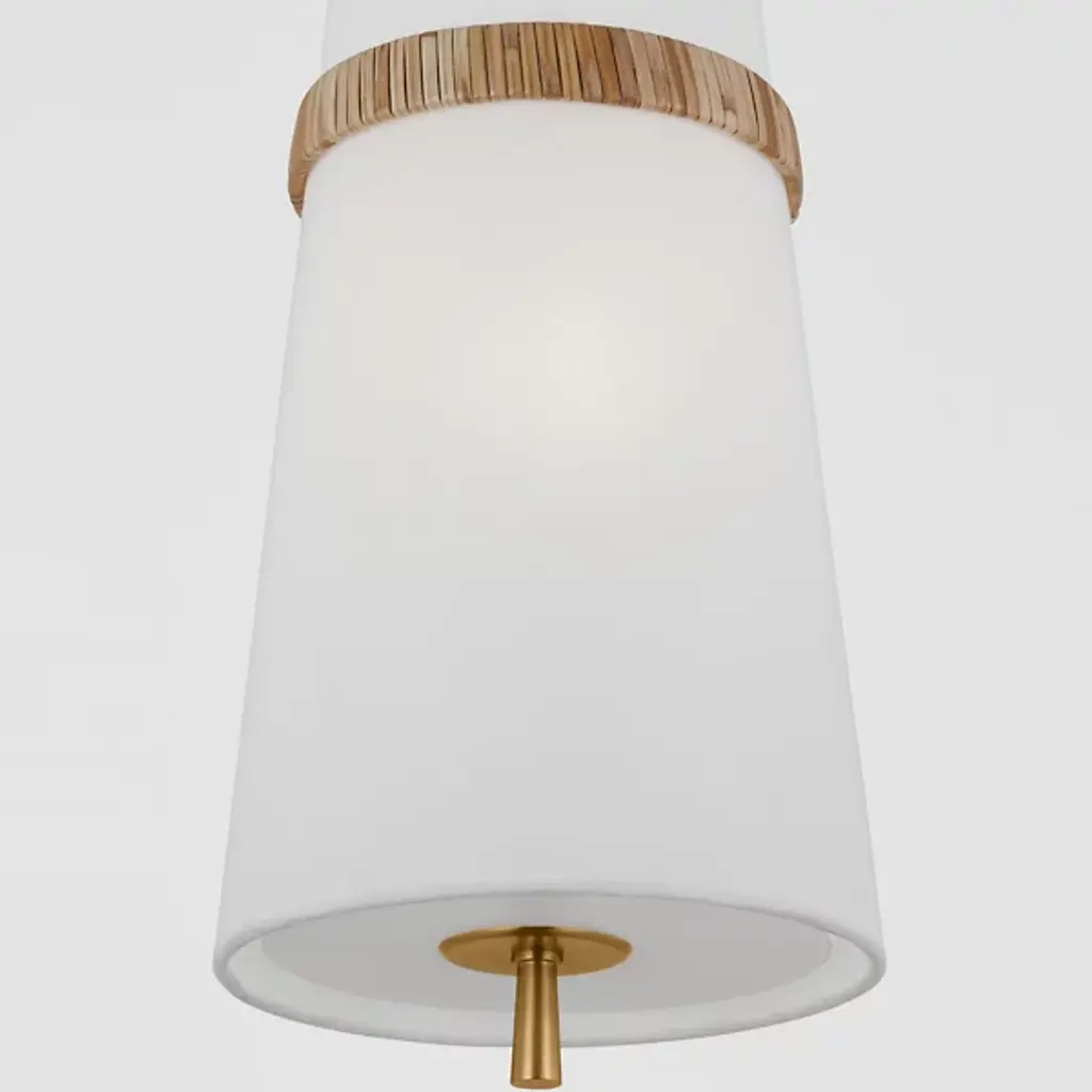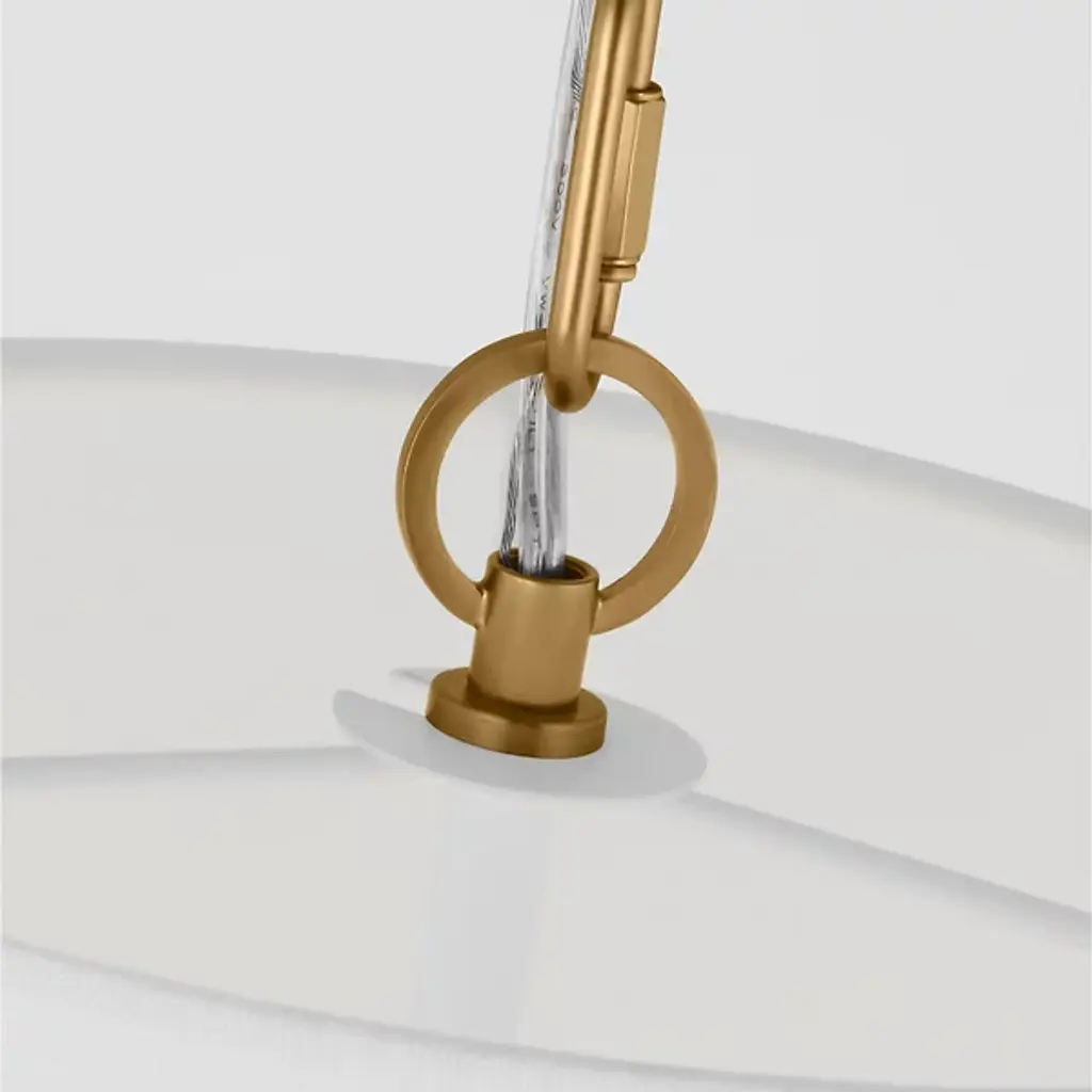 The Cordtlandt Pendant from Visual Comfort Studio is an exquisite light fixture designed by Alexa Hampton. This pendant boasts a contemporary elegance, featuring a chain of rings securely attached to a ceiling canopy. Suspended from these rings is a tapered linen shade, delicately tempering the brilliant LED illumination. The gorgeous banding surrounding the shade accentuates the pendant’s contemporary aesthetic. You can adjust the brightness level with ease using a separately sold ELV dimmer.