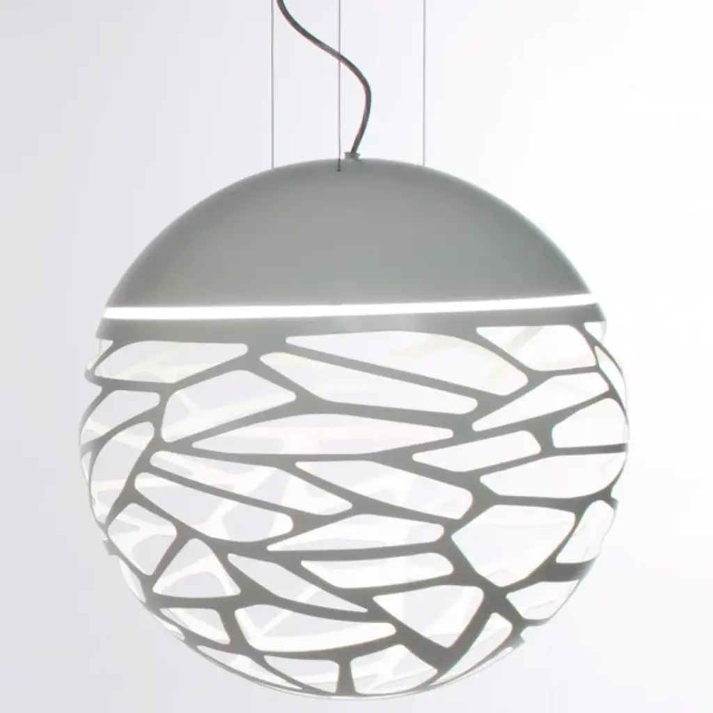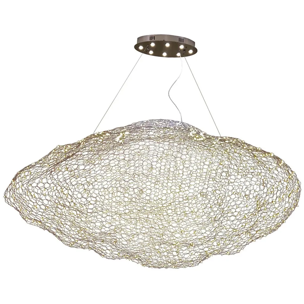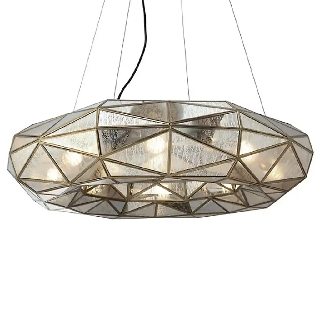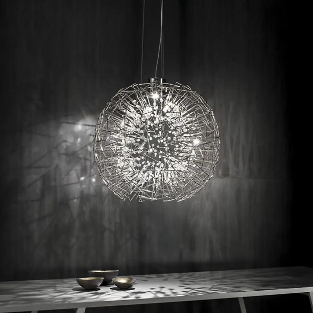The Terzani Core LED Pendant is quite dazzling at its center, focusing a beam of LED light through a mass of crystal beads that are held steadily within a geometric metal frame. The angular rods of iron create a natural barrier between the outer structure and the precious core, creating dynamic patterns of light around the fixture once lit. The open frame allows a lot of light to flood through, performing functional needs above a dining room table with the benefit of casting a unique type of diffused light.