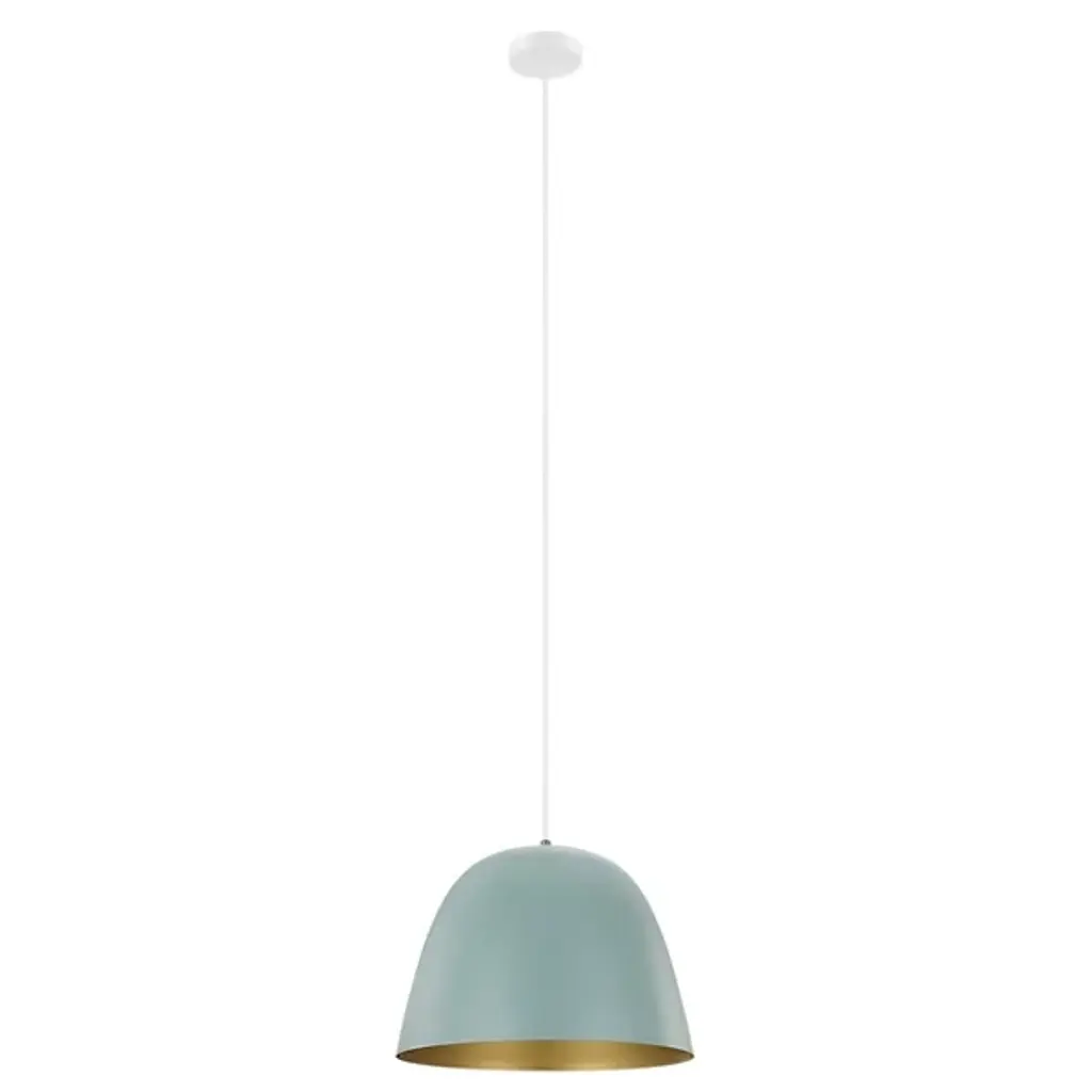 Add a pleasant, modern-minimalist piece to larger living spaces, foyers, or hallways in the form of the Coretto pendant by Eglo. A small but sturdy disc canopy suspends the stem and large, flared metal shade that drops from it, ensuring most attention slides from the shade’s smooth surface to the area the lamping illuminates. A reflective interior ably disperses glow from the lamping over a wider area than most pendants while ensuring most direct glare is obscured from the sides.