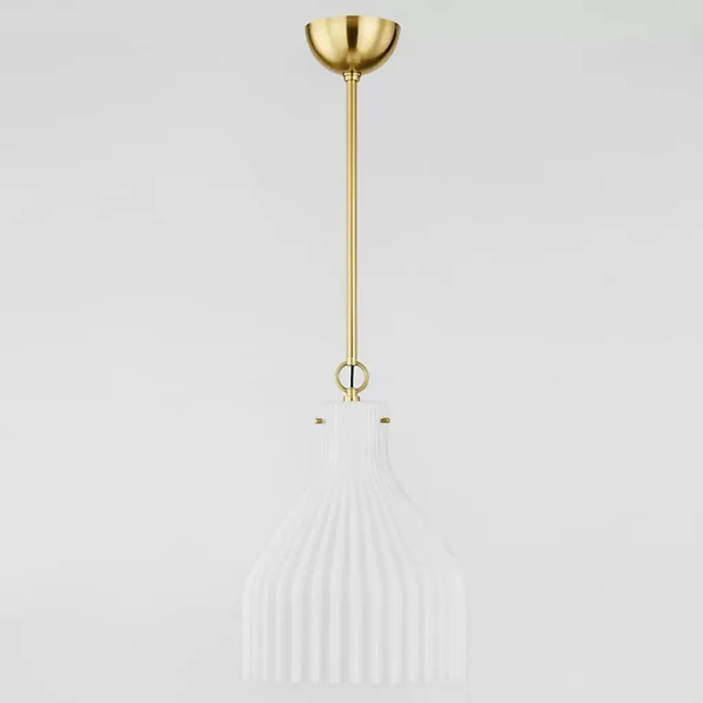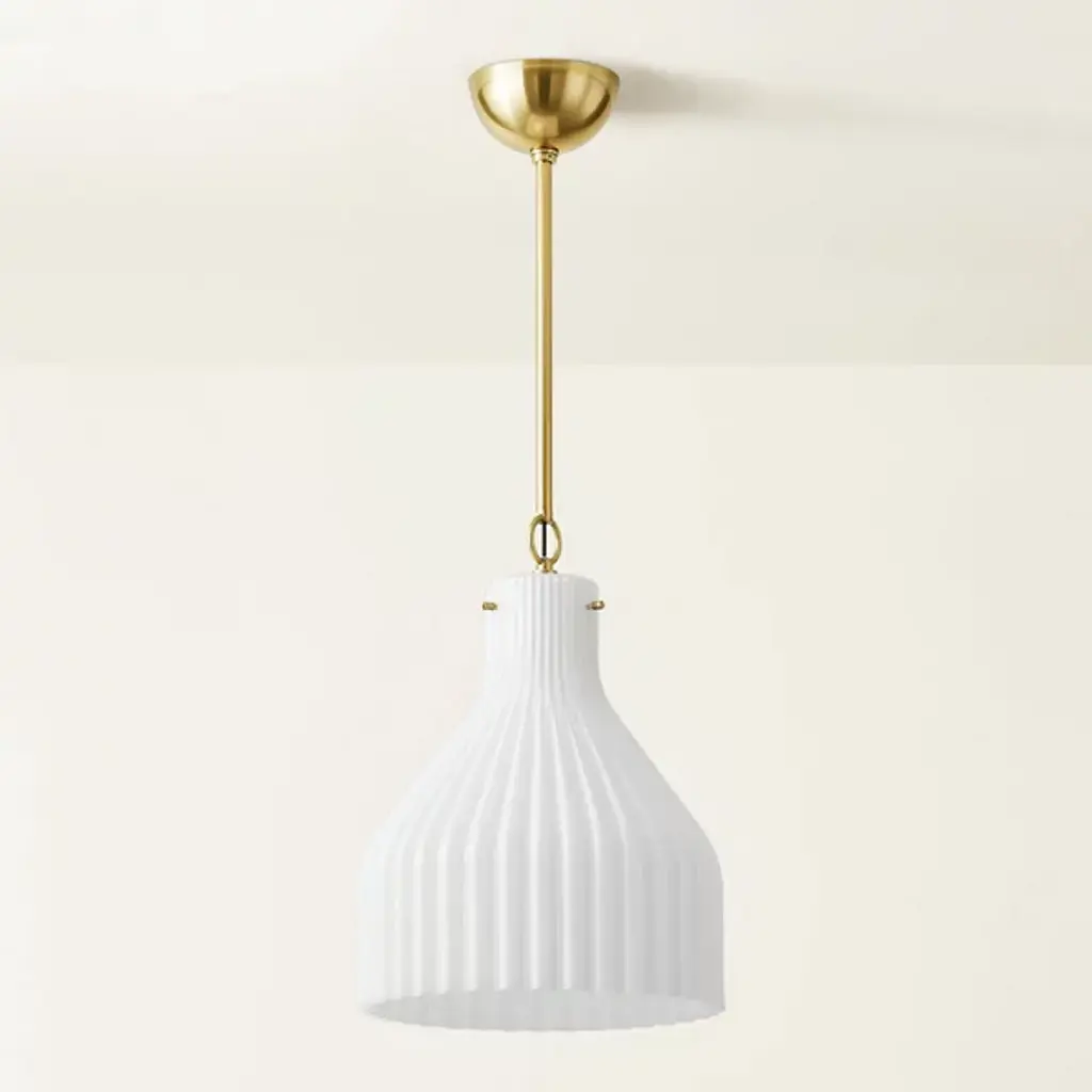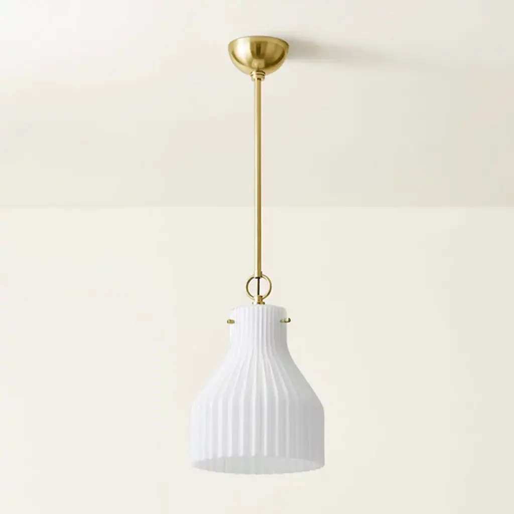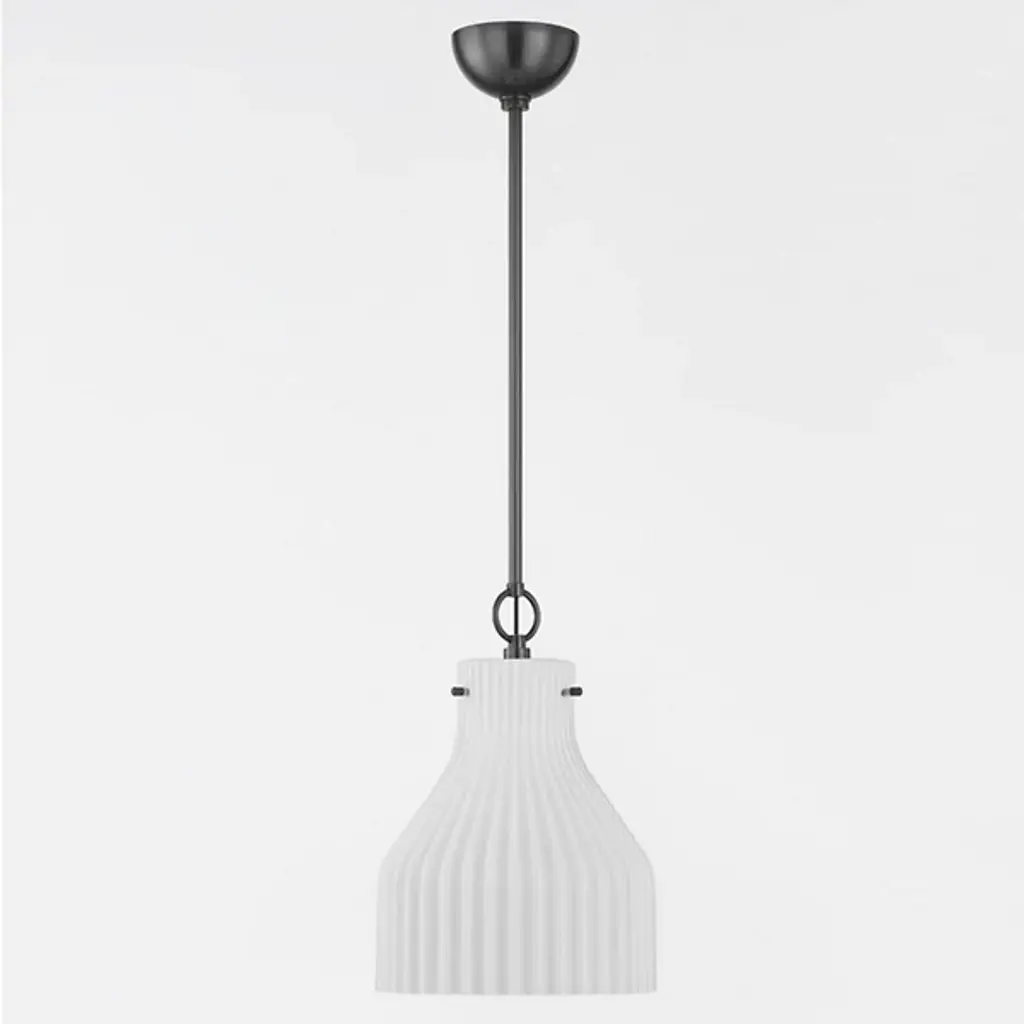 Inspired by ancient Greek design principles, the Corinthia Pendant from Mitzi embodies simplicity and elegance with its slender ribbed silhouette. The Opal Glass shade delicately extends and gently flares, infusing a touch of minimalist sophistication into any room. The pendant offers versatility, whether suspended individually to create a focal point or grouped together for a cohesive look above countertops or along hallways. This pendant blends transitional style with timeless appeal, making it suitable for both contemporary and classic interiors.
