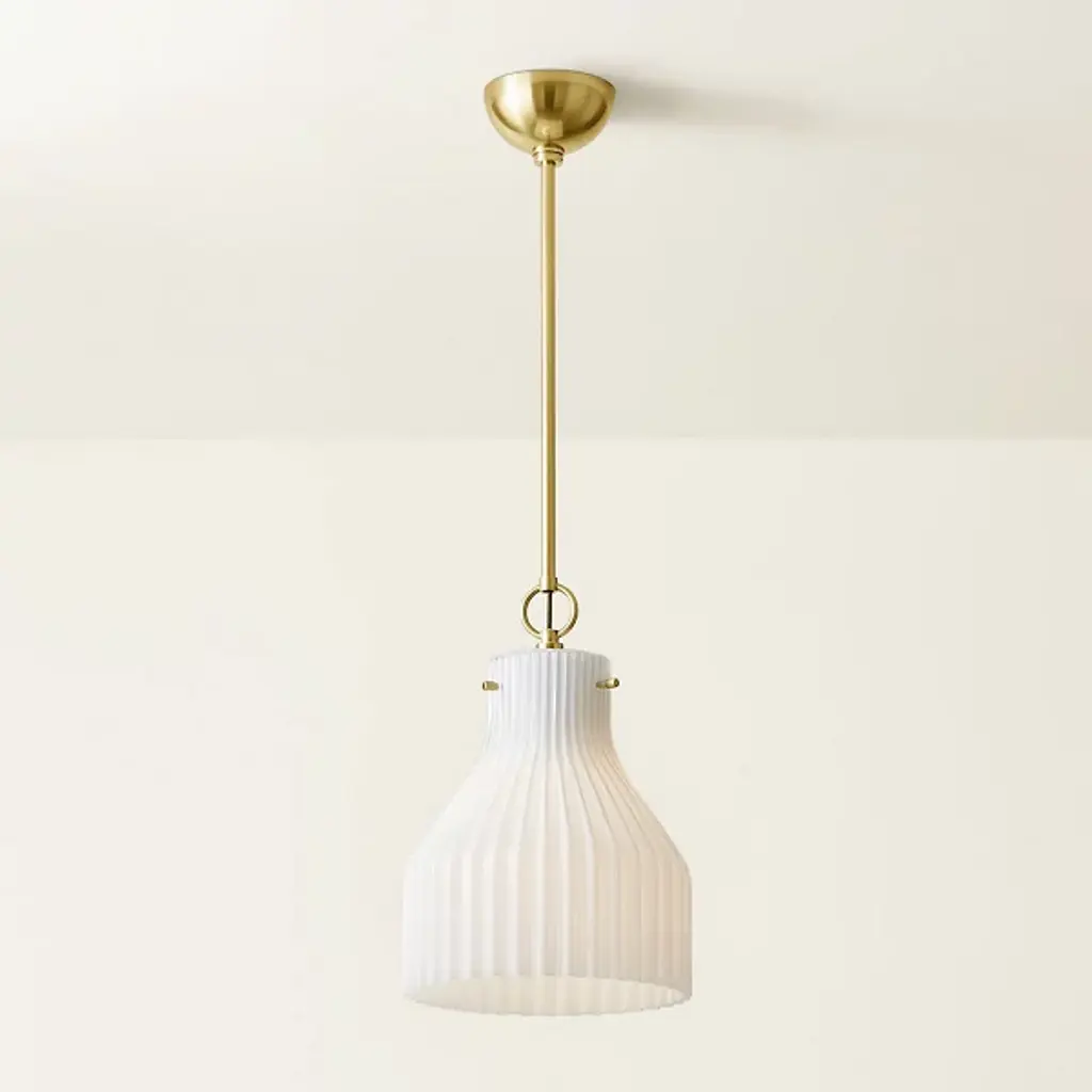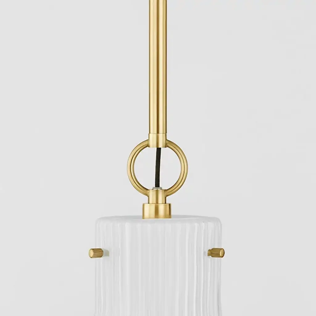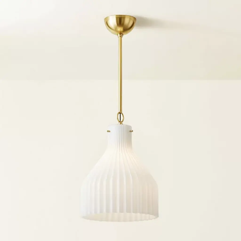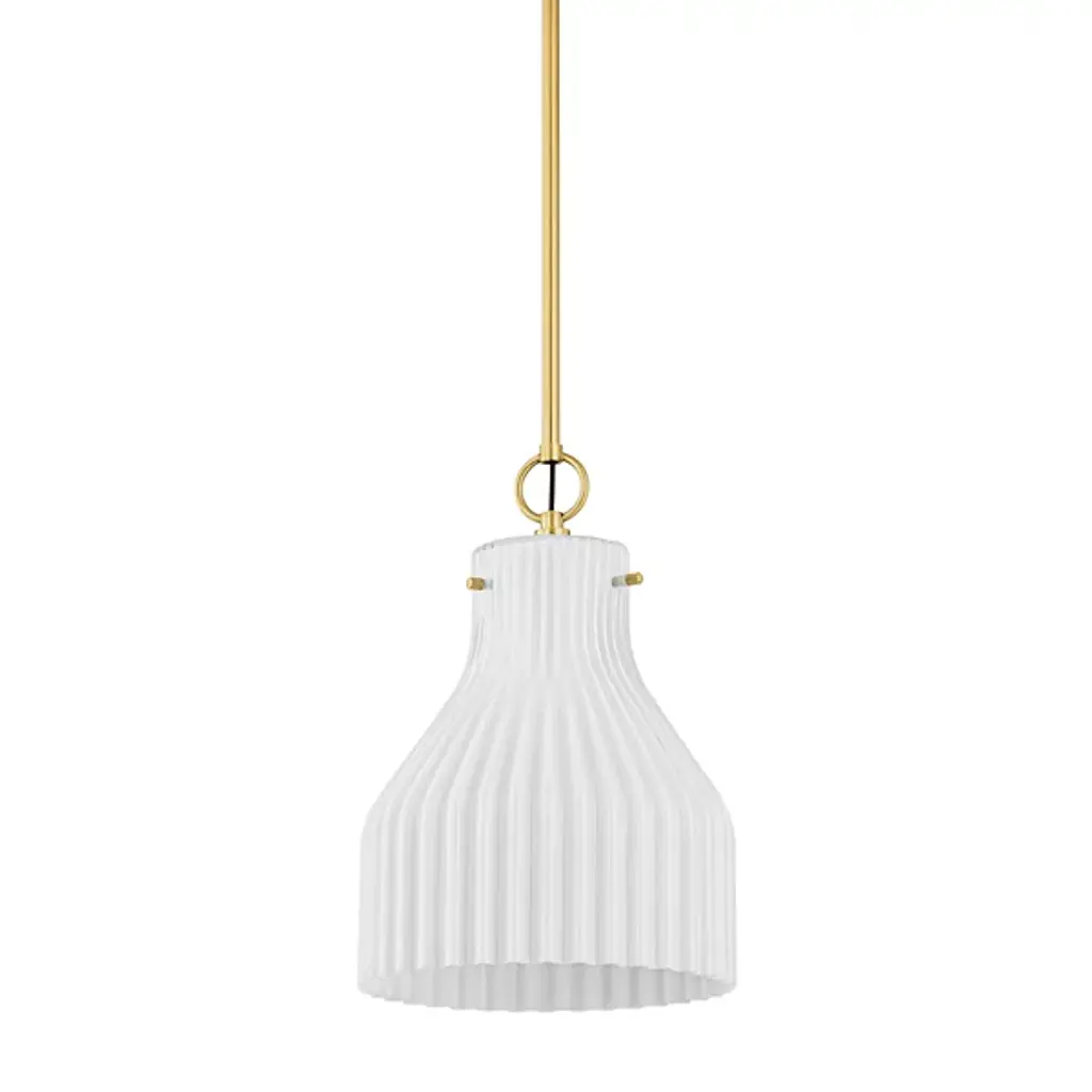 Inspired by ancient Greek design principles, the Corinthia Pendant from Mitzi embodies simplicity and elegance with its slender ribbed silhouette. The Opal Glass shade delicately extends and gently flares, infusing a touch of minimalist sophistication into any room. The pendant offers versatility, whether suspended individually to create a focal point or grouped together for a cohesive look above countertops or along hallways. This pendant blends transitional style with timeless appeal, making it suitable for both contemporary and classic interiors.