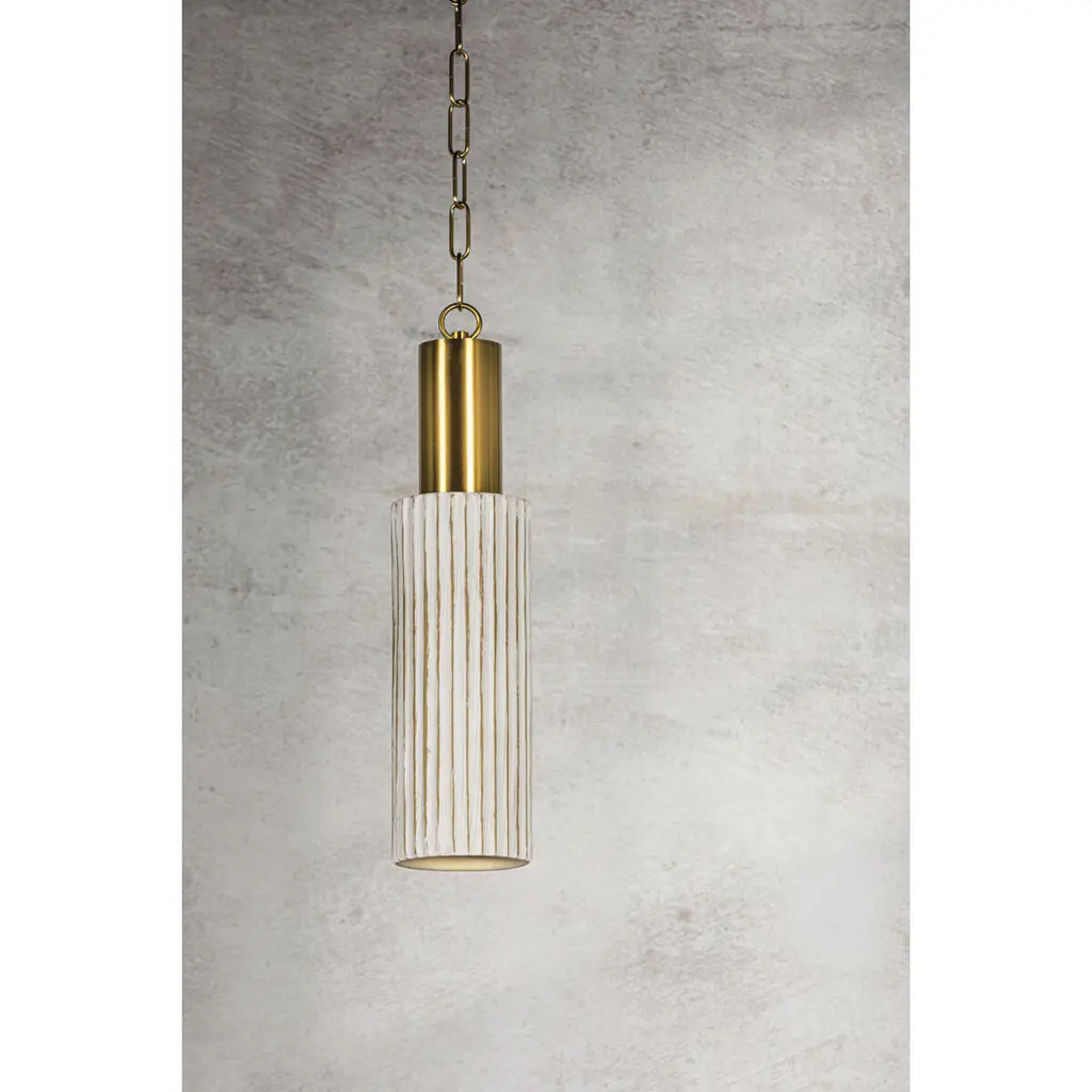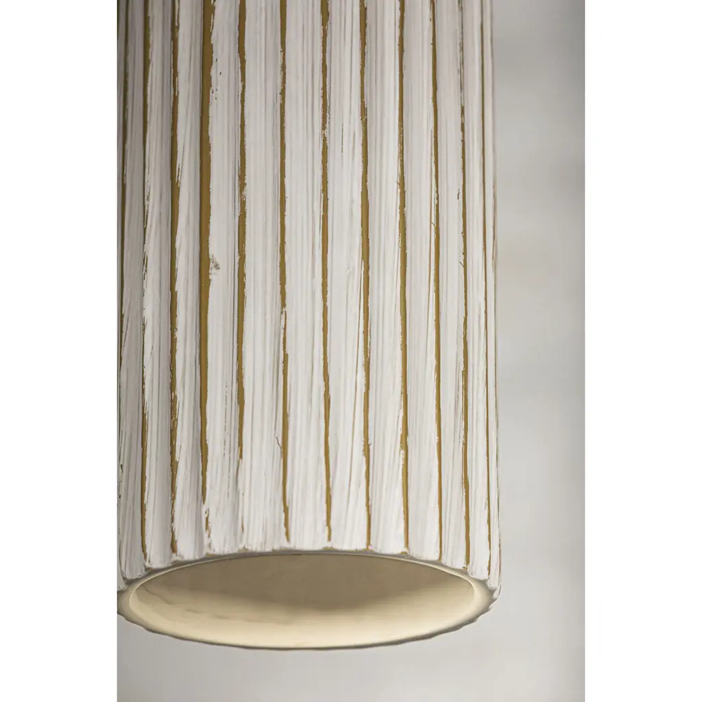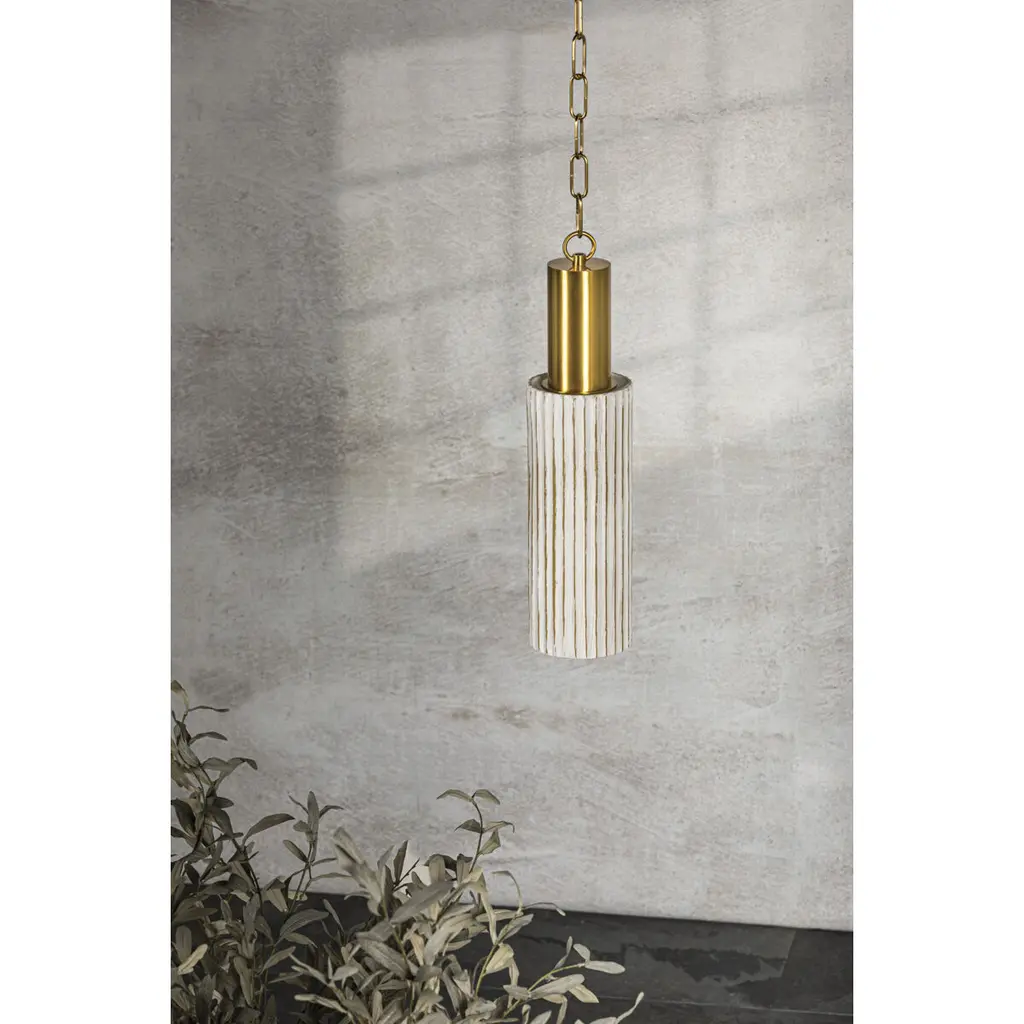 Treading the line between classic architecture and contemporary minimalism, Corissa features acylindrical body reminiscent of a Roman column. Crafted from fluted Whitewashed Bisque, thefixture is balanced by a flawless Aged Brass cap and chain. Whether as a pendant light or flushmount, Corissa's silhouette exudes depth and character, making a chic statement in hallwaysand kitchens. Part of THELIFESTYLEDCO® collection.