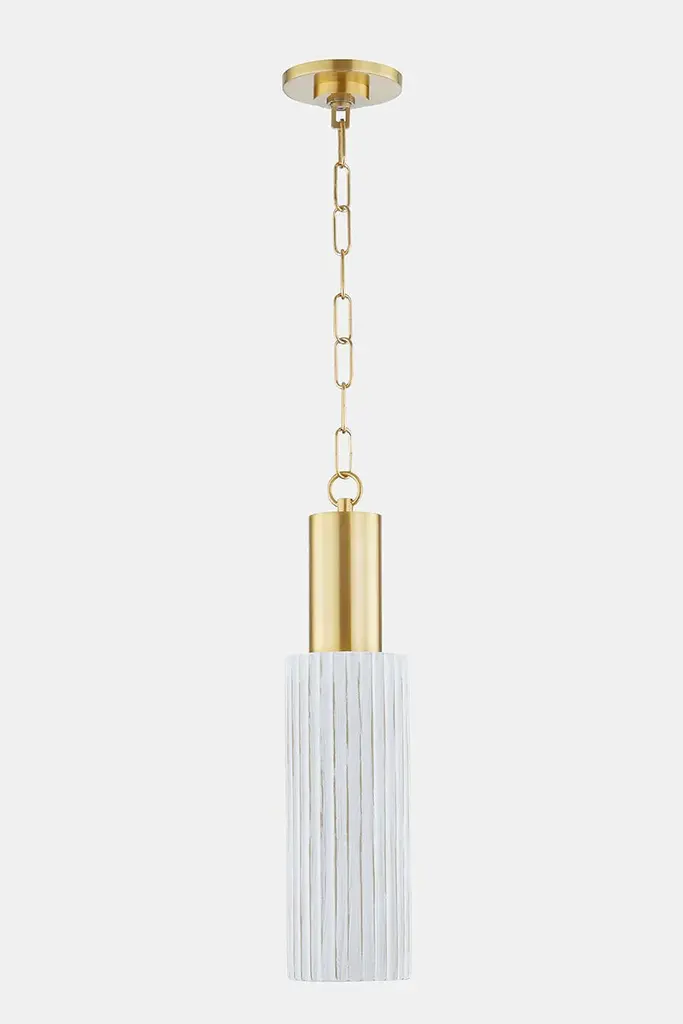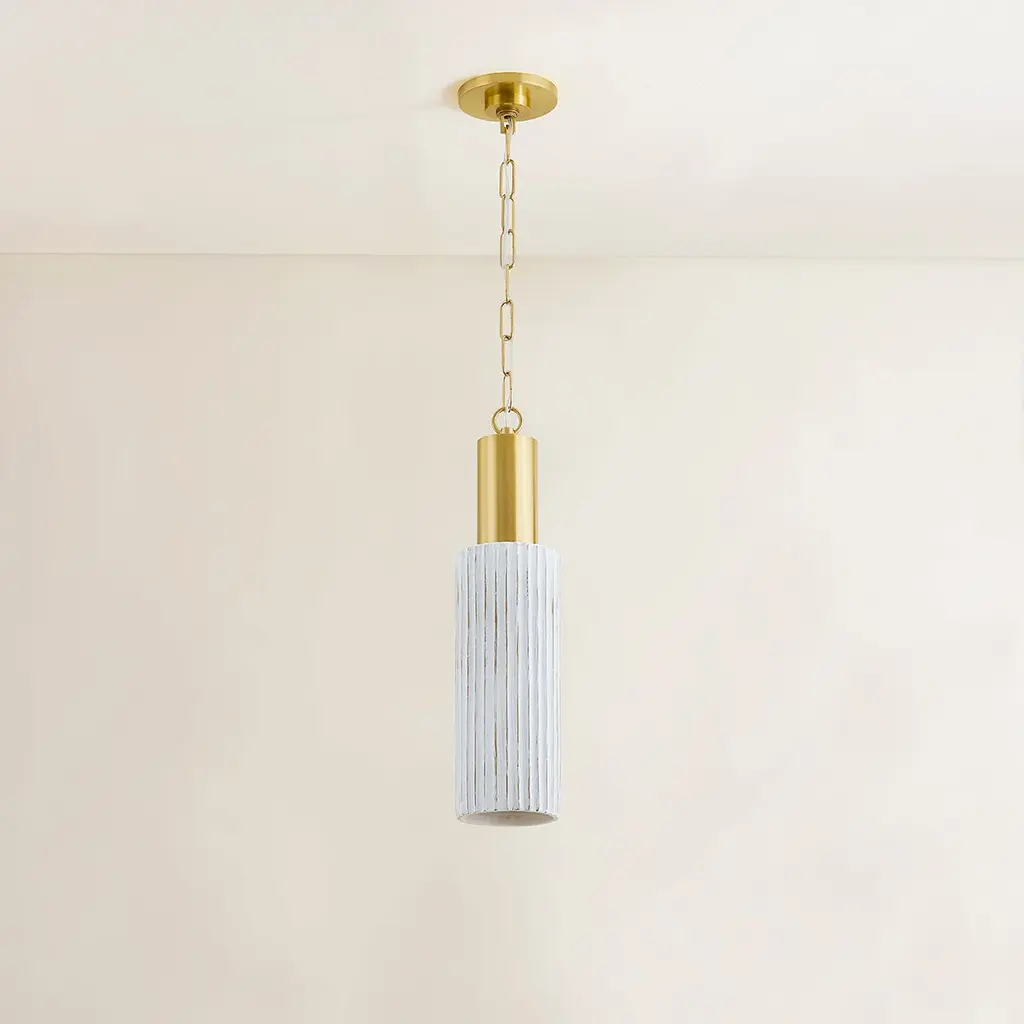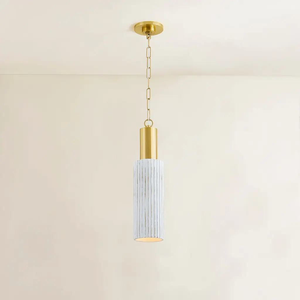 Treading the line between classic architecture and contemporary minimalism, Corissa features a cylindrical body reminiscent of a Roman column. Crafted from fluted Whitewashed Bisque, the fixture is balanced by a flawless Aged Brass cap and chain. Whether as a pendant light or flush mount, Corissa's silhouette exudes depth and character, making a chic statement in hallways and kitchens. Part of THELIFESTYLEDCO® collection.