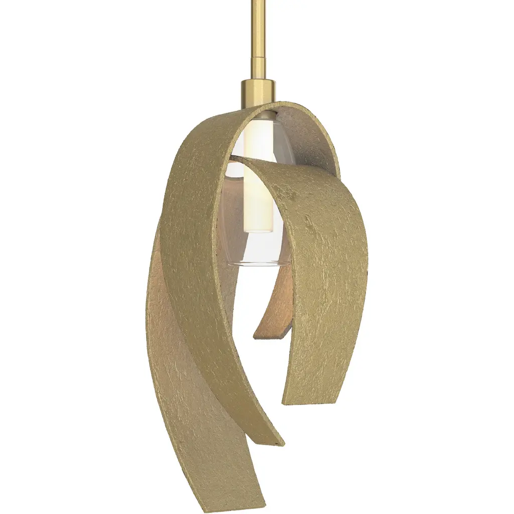 As a standalone fixture or as a group, our large pendant adds elegance to a space. Light is diffused through clear/frosted glass and softly reflected off the hand-forged steel curves which are handmade by Vermont artisans.