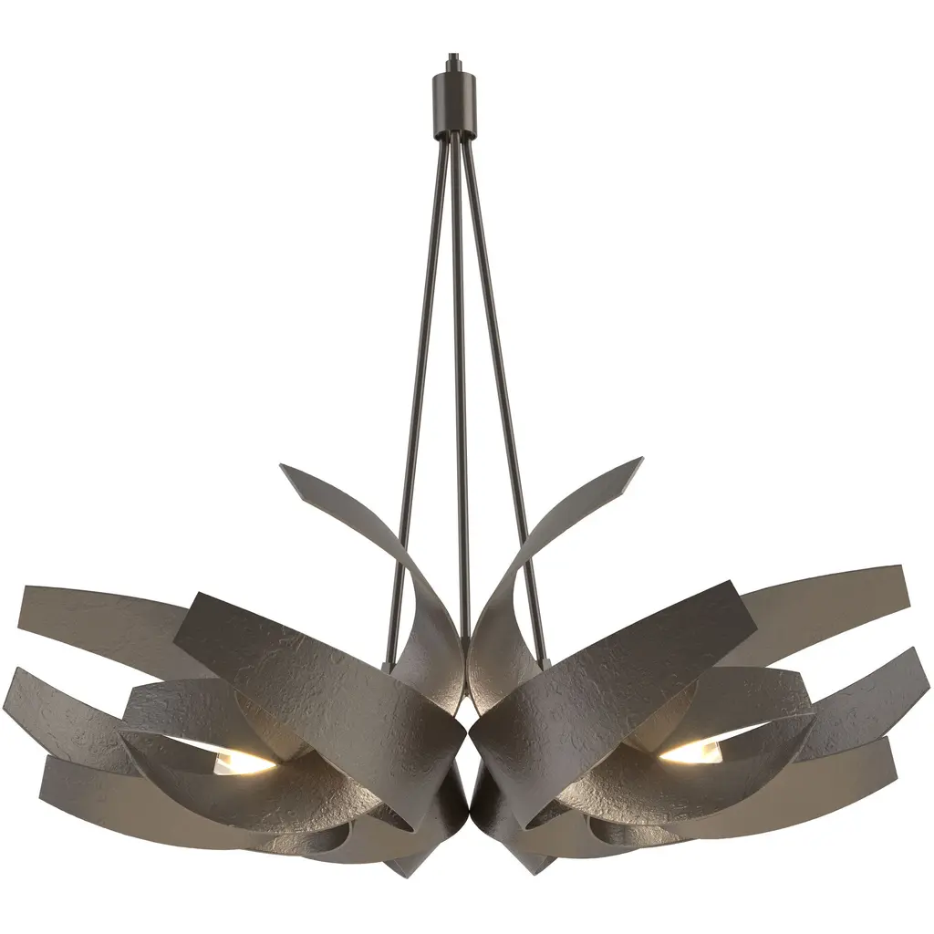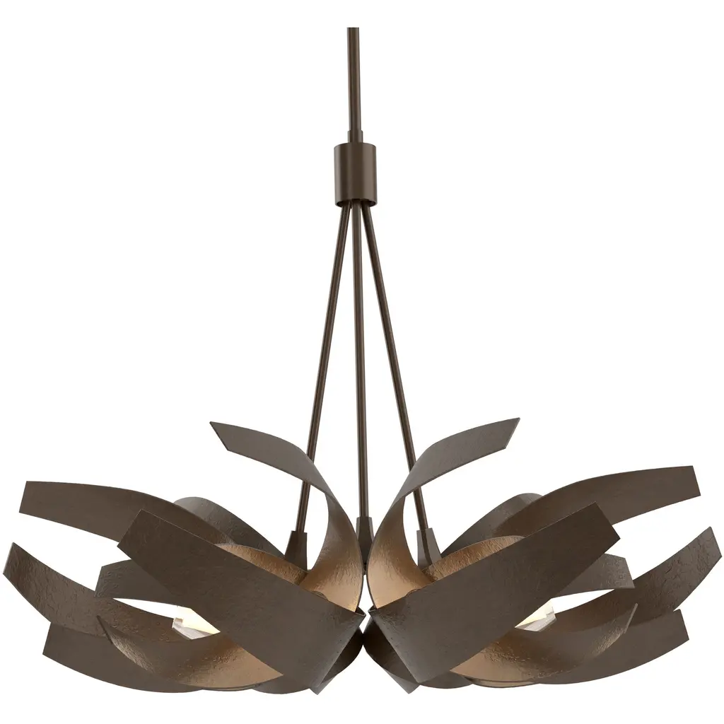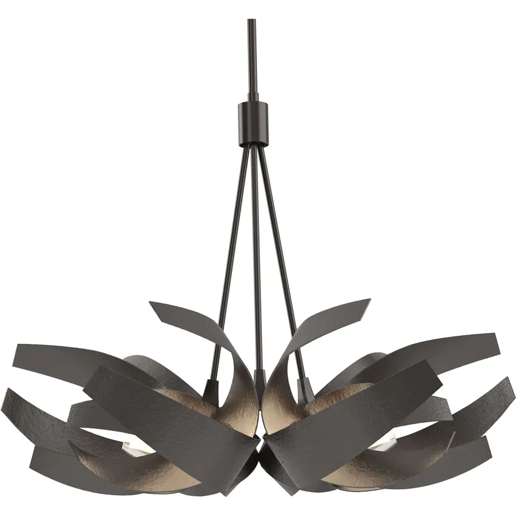 It's a piece that garners attention for any room in need of high-end design. This pendant is handcrafted by Vermont artisans who shape forged steel into gentle curves before assembling. A golden glow is delivered via clear/frosted glass diffusers that give the impression of warmth.