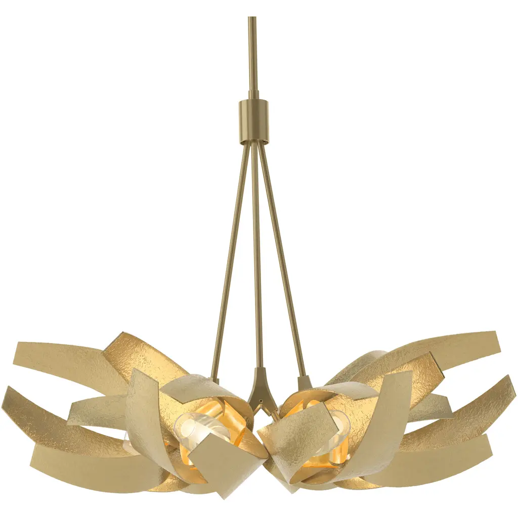 The iconic Corona Collection has a new entry. Driven by popular demand, this new Corona Pendant features 6 interior clusters of 5 solid, polished and sealed brass petals that reflect and refract the light it embraces, creating a warm golden glow. Stunning juxtaposition of the heavily textured steel of the iconic Corona with the brass inner petals.