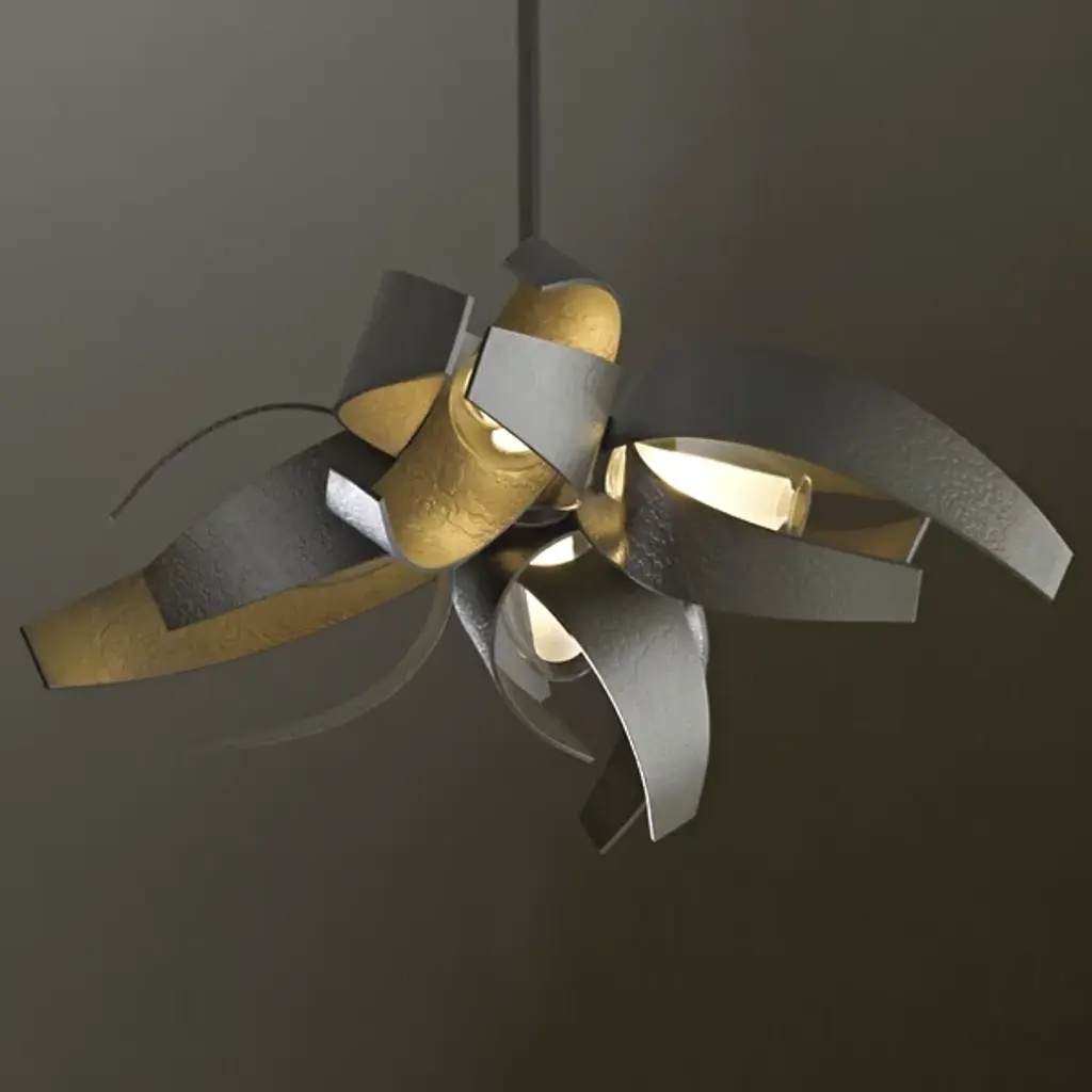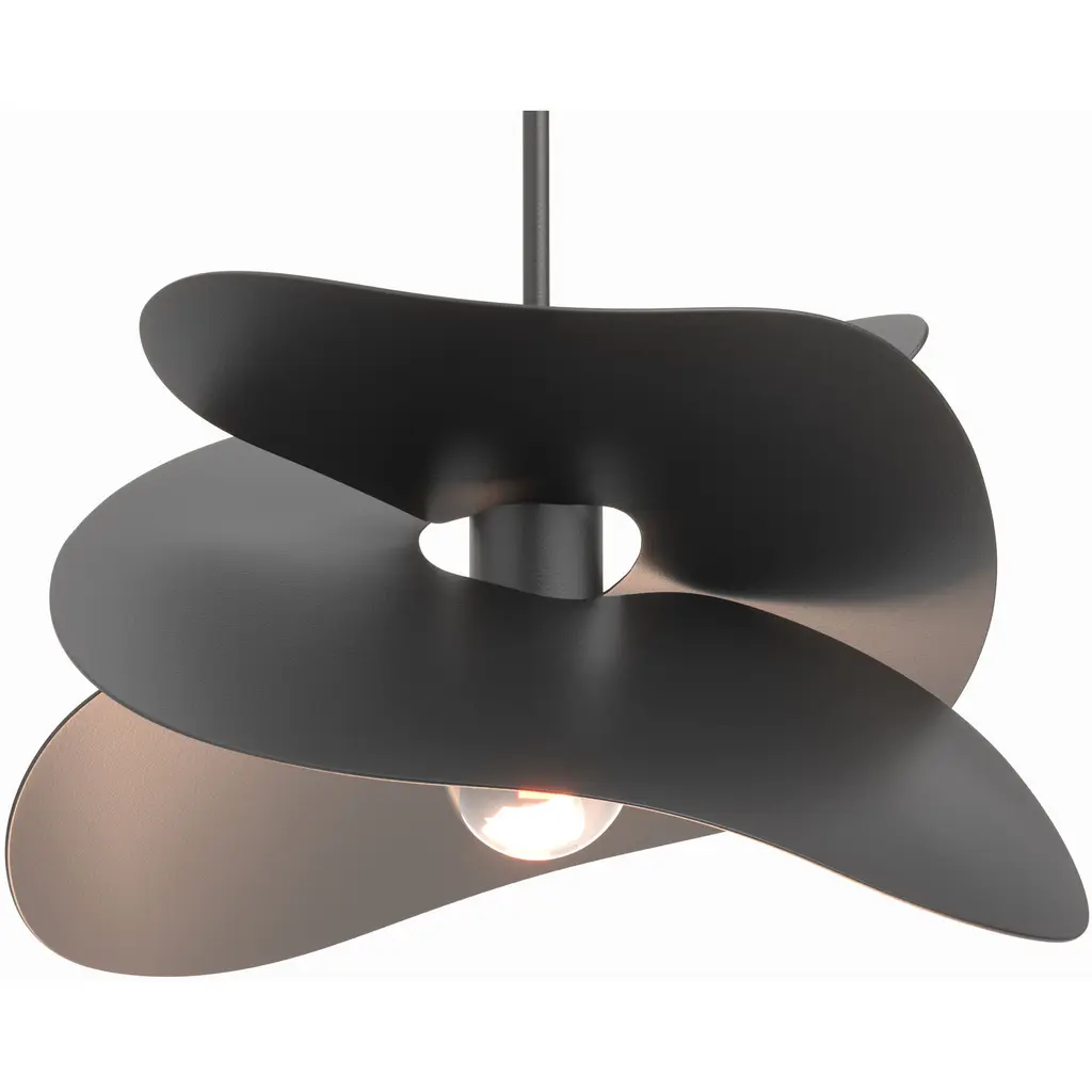 The Hubbardton Forge Corona Small Pendant will add some real flare to your living space with its dynamic curves and unique shape. Named after the aura of plasma that surrounds celestial bodies, the illumination peaks through the hand crafted iron, surrounding your living space in a wash of light. The illumination is diffused through glass shades with a frosted interior, which remain tucked in between the curved iron pieces.