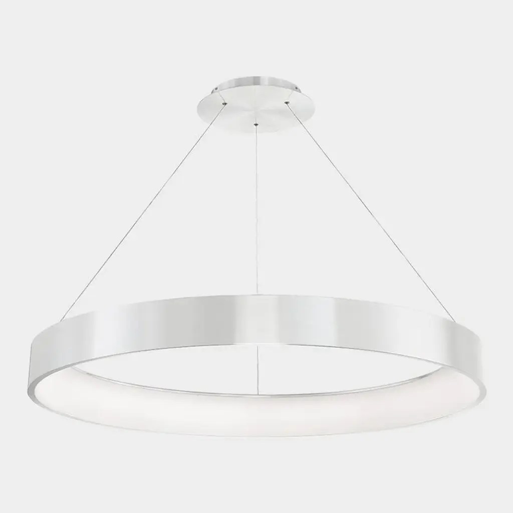 Cleverly hidden LED modules and a circular frosted diffuser floating inside a halo of spun aluminum work together for a beautiful, even illumination. Note the two new finishes—white and black—along with the original aluminum. Features