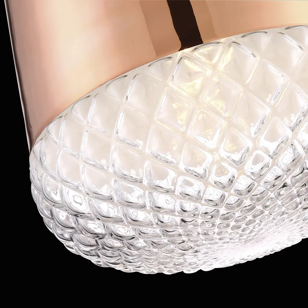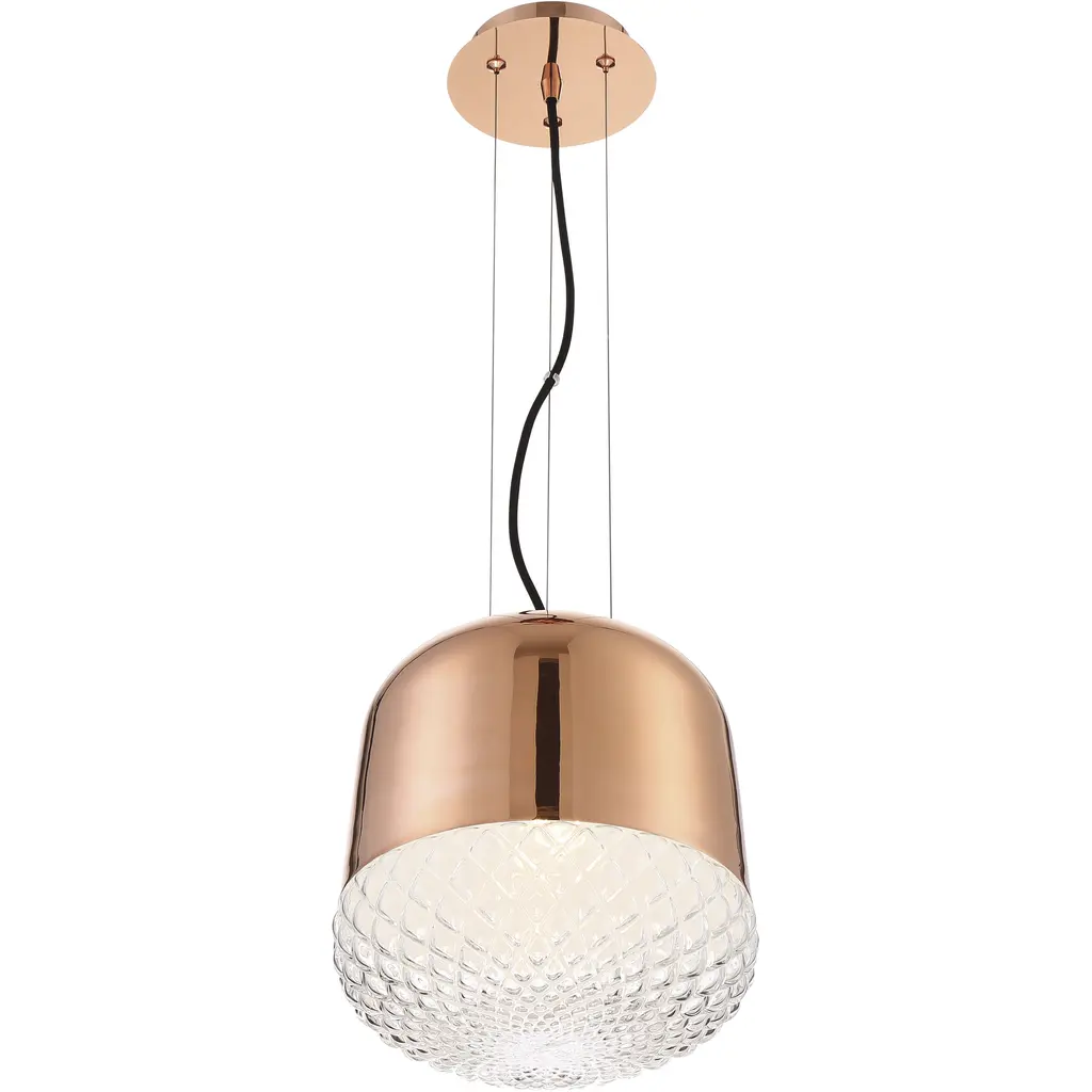 Corson Modern Light Pendant, Polished Rose Gold Metal Shade with Casted Weave Glass, 1 A19 Light Bulb, 14 Inches in Diameter