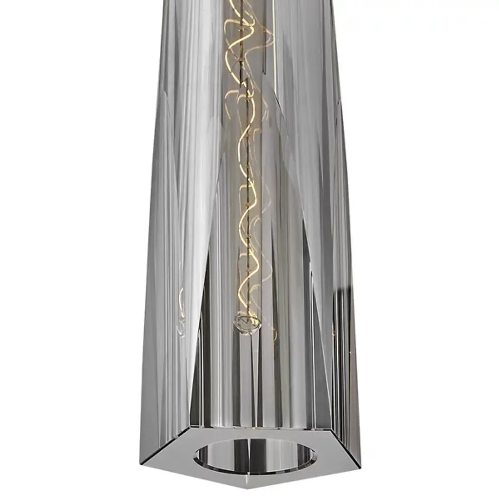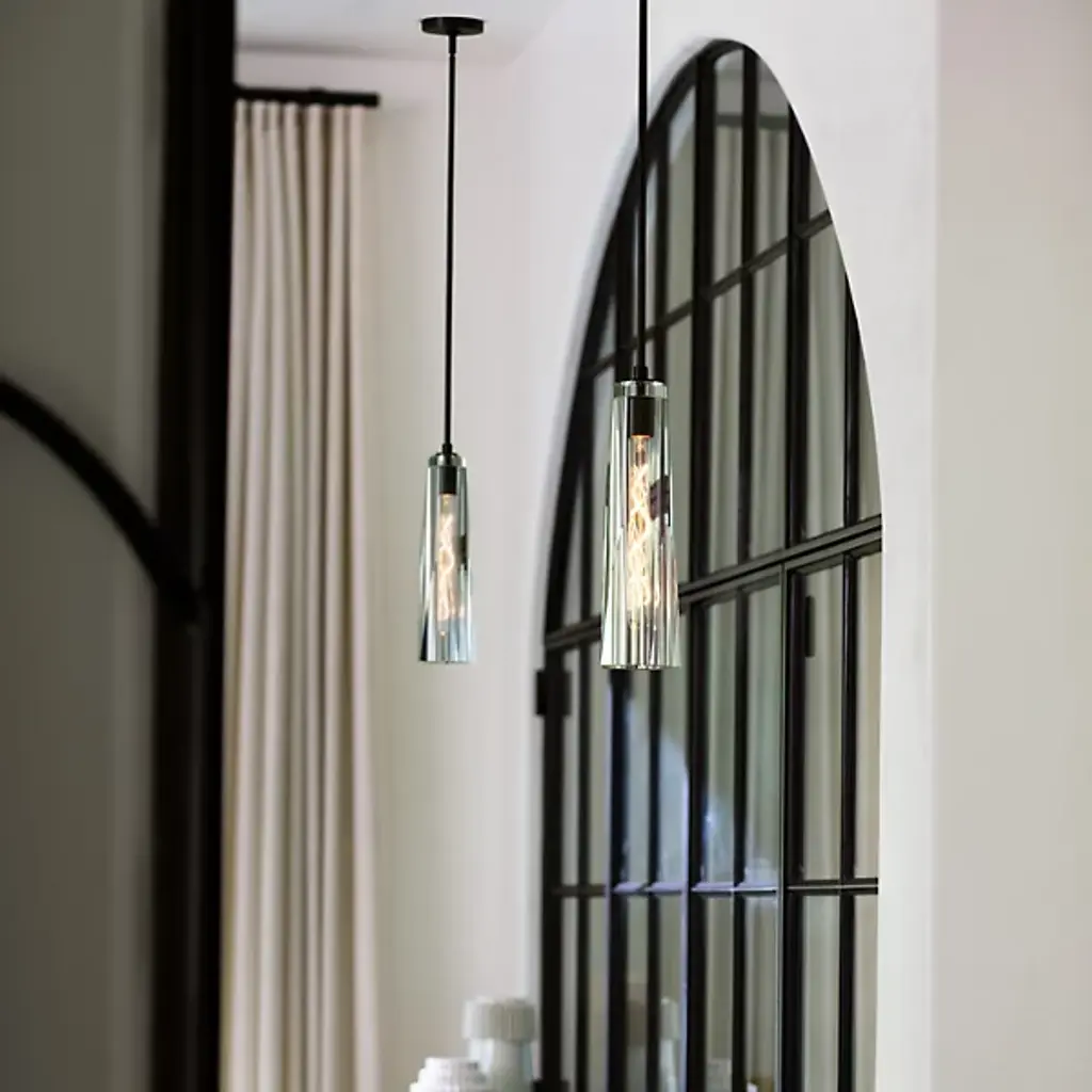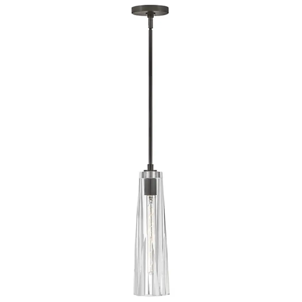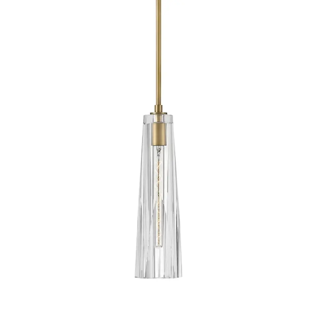 A dashing delight. The Cosette Mini Pendant from Fredrick Ramond moves the eyes up and down with trails of vibrant highlights and a relaxed cast glow. The pendant’s elegant finish and refined look draw from mid-century modern design. Its slender suspension and shade help it slot in tight spaces on its own or as part of a series. The bold finish of the metal reflects off the shimmering cuts of the glass shade below. This towering shade complements a long, tubular bulb and receives its vibrant warmth. The pendant disperses an energetic ambiance and an elegant down glow.