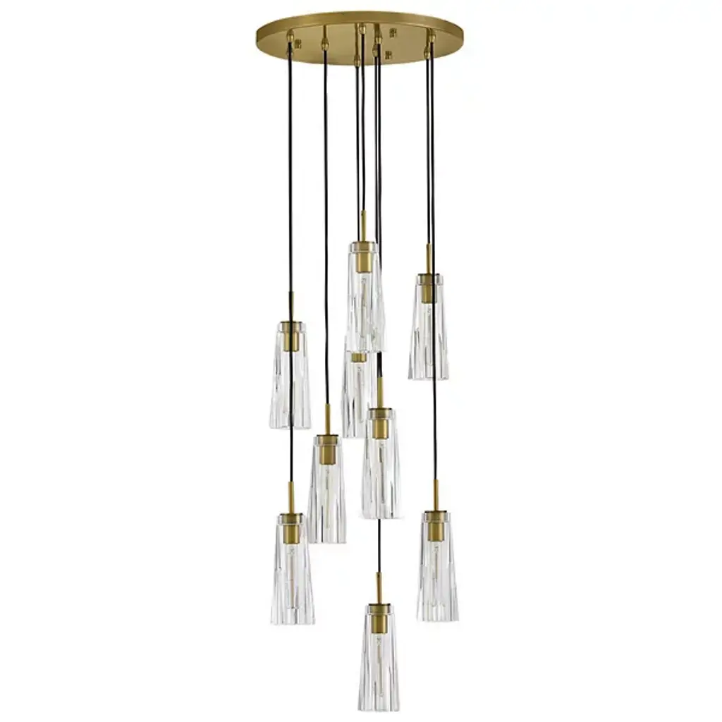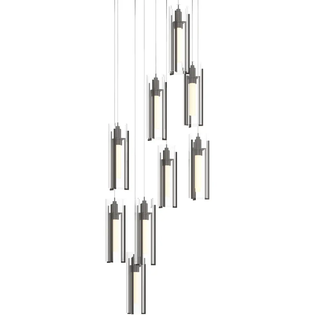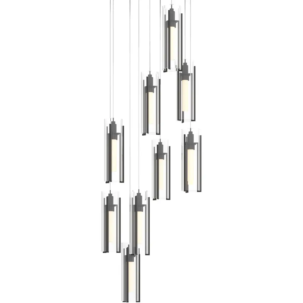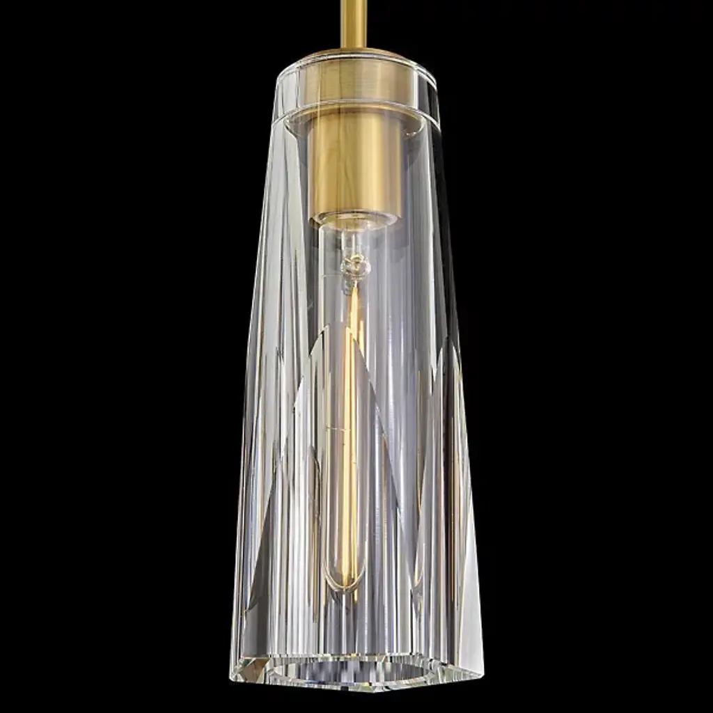 The Cosette Multi Light Pendant from Fredrick Ramond features elongated crystal forms that refract light in multidimensional patterns. Each clear crystal element hangs at carefully calculated heights, creating a waterfall effect as light passes through its faceted surfaces. The minimal steel framework allows the crystals to take center stage while providing necessary structural integrity. When illuminated, the suspension creates brilliant reflections through the crystal elements, generating dynamic light play that shifts with every viewing angle. This multi-light pendant requires proper structural support due to its weight, ensuring both beauty and safety in dining areas or entryways.