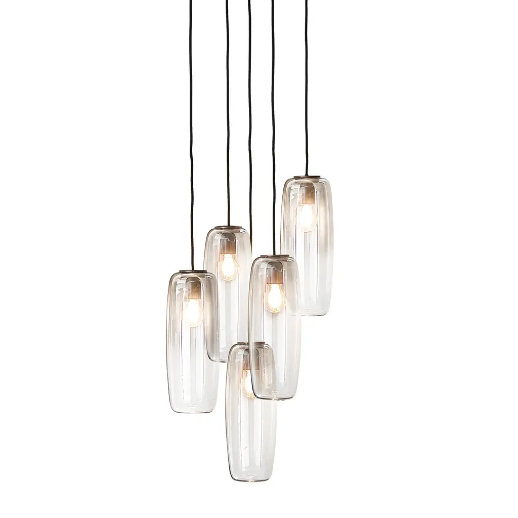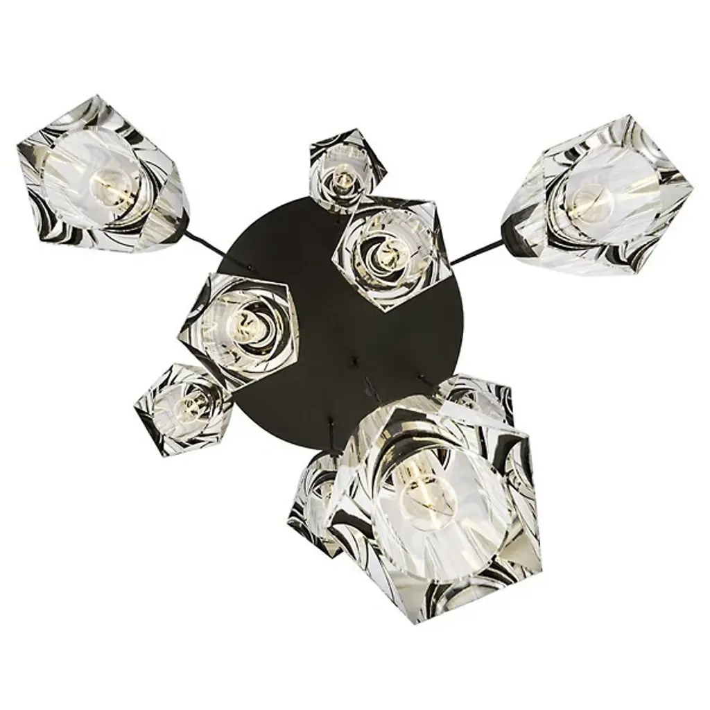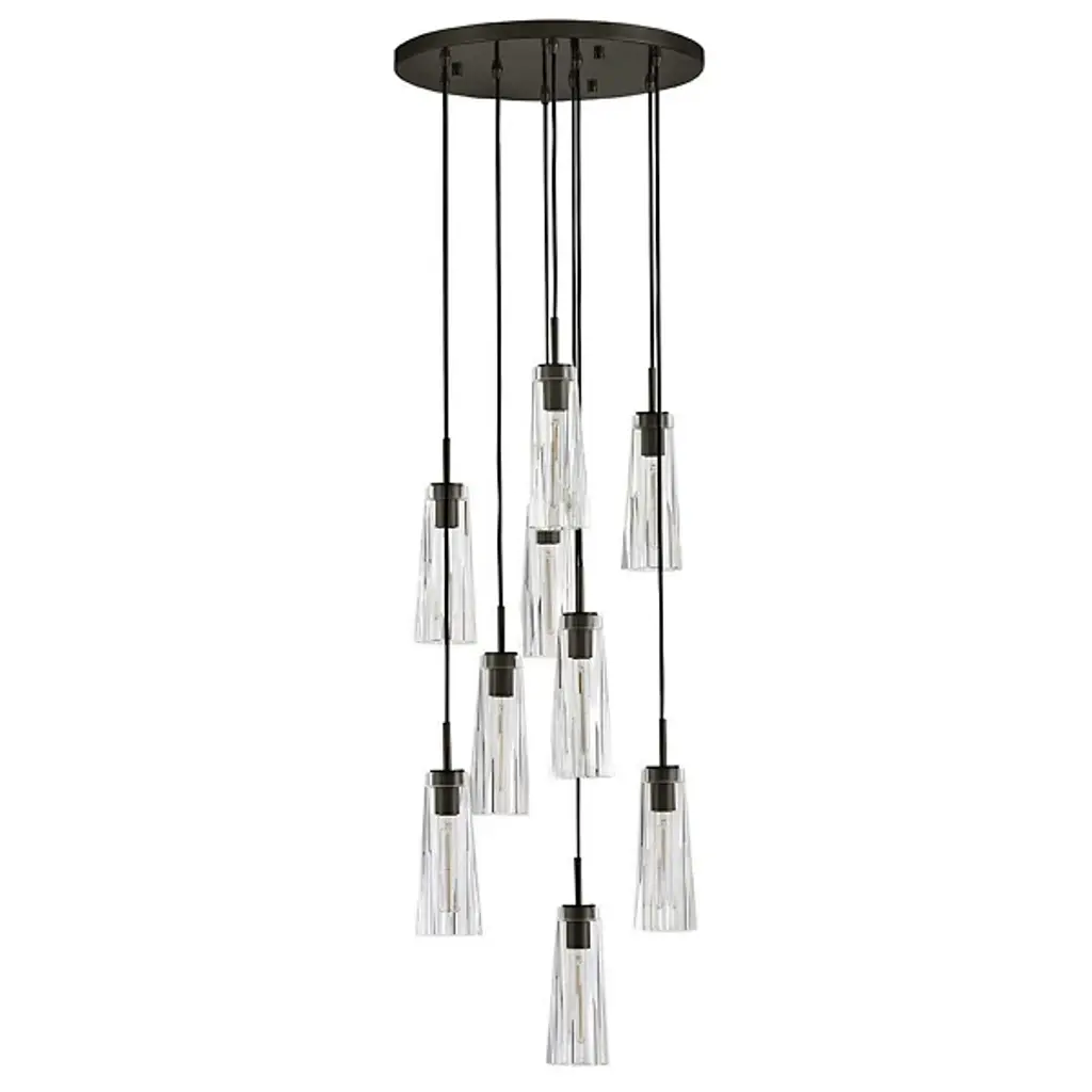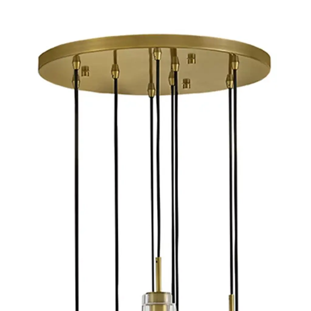 The Cosette Multi Light Pendant from Fredrick Ramond features elongated crystal forms that refract light in multidimensional patterns. Each clear crystal element hangs at carefully calculated heights, creating a waterfall effect as light passes through its faceted surfaces. The minimal steel framework allows the crystals to take center stage while providing necessary structural integrity. When illuminated, the suspension creates brilliant reflections through the crystal elements, generating dynamic light play that shifts with every viewing angle. This multi-light pendant requires proper structural support due to its weight, ensuring both beauty and safety in dining areas or entryways.
