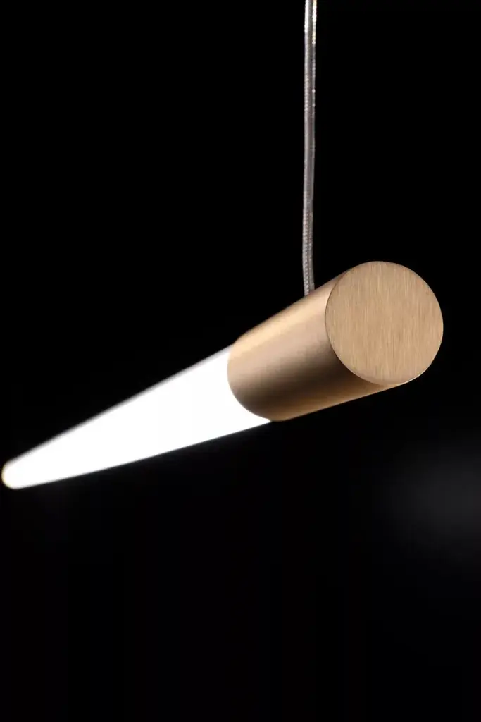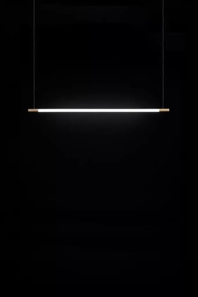 COSIMA is a suspension lamp made for methacrylate, brass and aluminium.A blade of light that draws spaces with its minimal lines, a luminous tube in opal plexiglass (available in different lengths) with the metal frame in brass or in painted metal. Cosima is an extremely flexible lamp that stimulates the designer’s creativity. It can be used individually but also allows you to create custom compositions on the walls or to imagine spectacular suspended solutions even in large environments.Light Source:-LED 21W 24V dc 3000K CRI>94 1700Lm-LED 26W 24V dc 3000K CRI>94 2100Lm-LED 31W 24V dc 3000K CRI>94 2600Lm-LED 36W 24V dc 3000K CRI>94 3050Lm-LED 41W 24V dc 3000K CRIDimming:-DALI/PUSHDriver included inserted in the ceiling rose.Cable colour:-Transparent