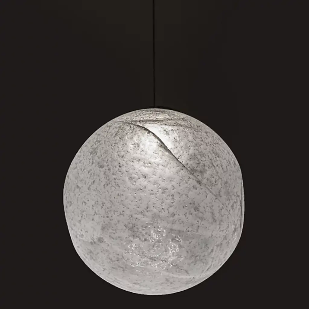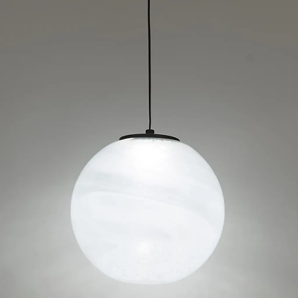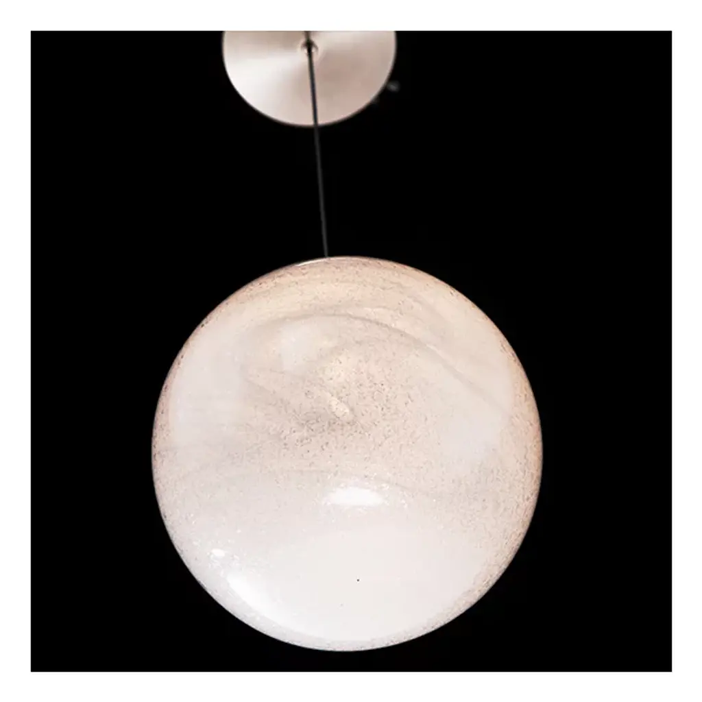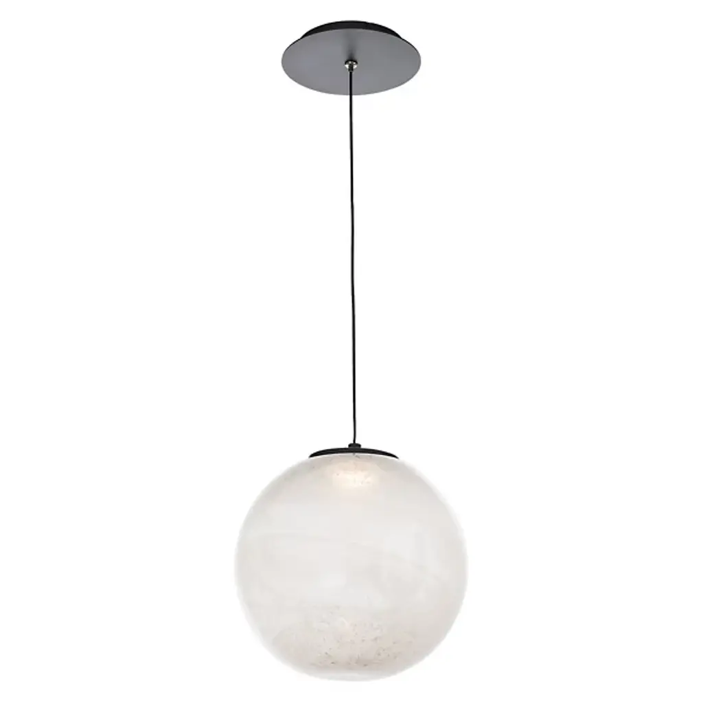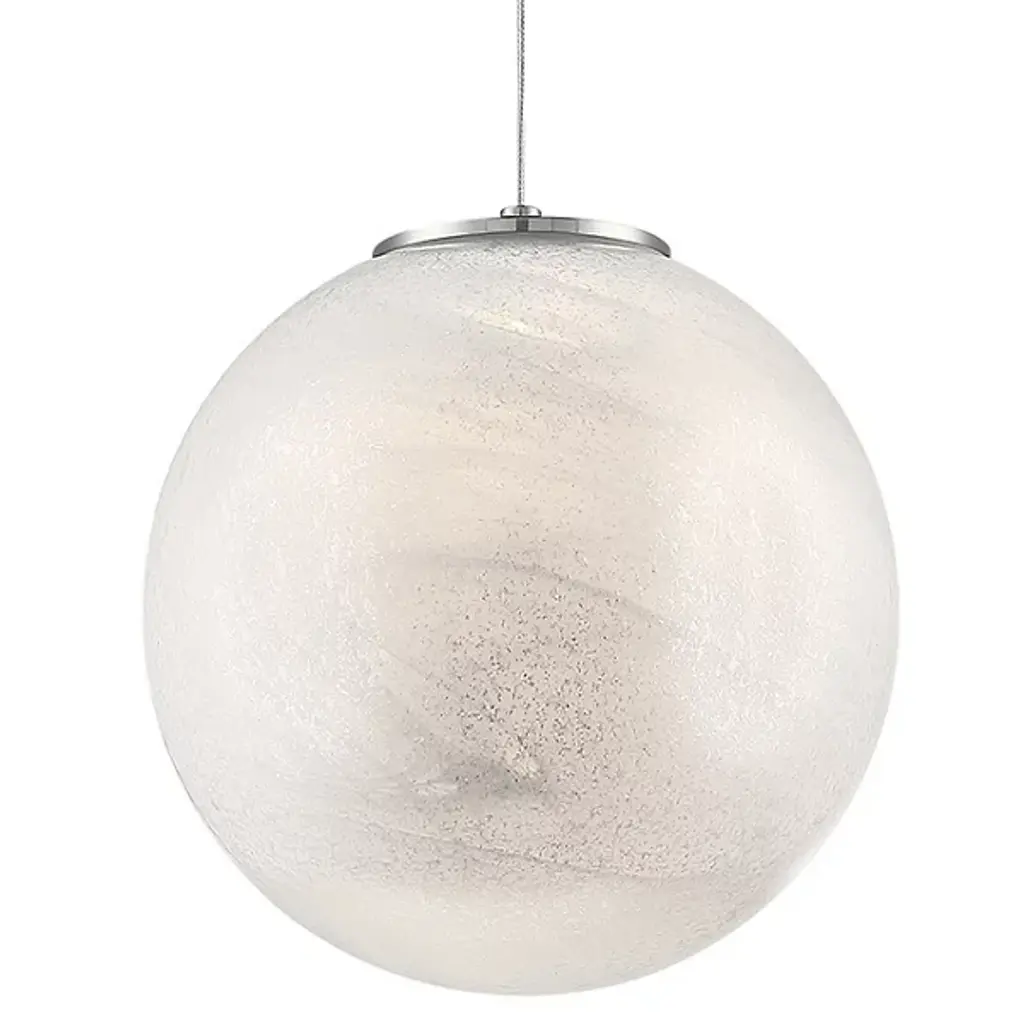 Fascinating indoor fixture exudes a distinct artistic flair. The Cosmic Crystal LED Pendant by Modern Forms imbues a sense of awe and wonder in large, open spaces. Designed with a spherical shade made of rock crystal art glass and minimal aluminum hardware, this pendant hangs from a ceiling canopy. The shade is crafted using a 7-step art-glassmaking process that results in a sparkling bubble and marbleized effects. This fixture utilizes eco-friendly LED technology with excellent color rendering that makes it ideal for residential and commercial applications.