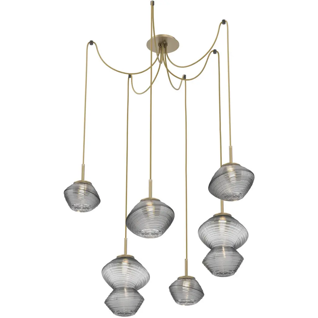 Cosmos 6 Light 17 Inch Novel Brass Swag Multi-Pendant Ceiling Light In Smoke