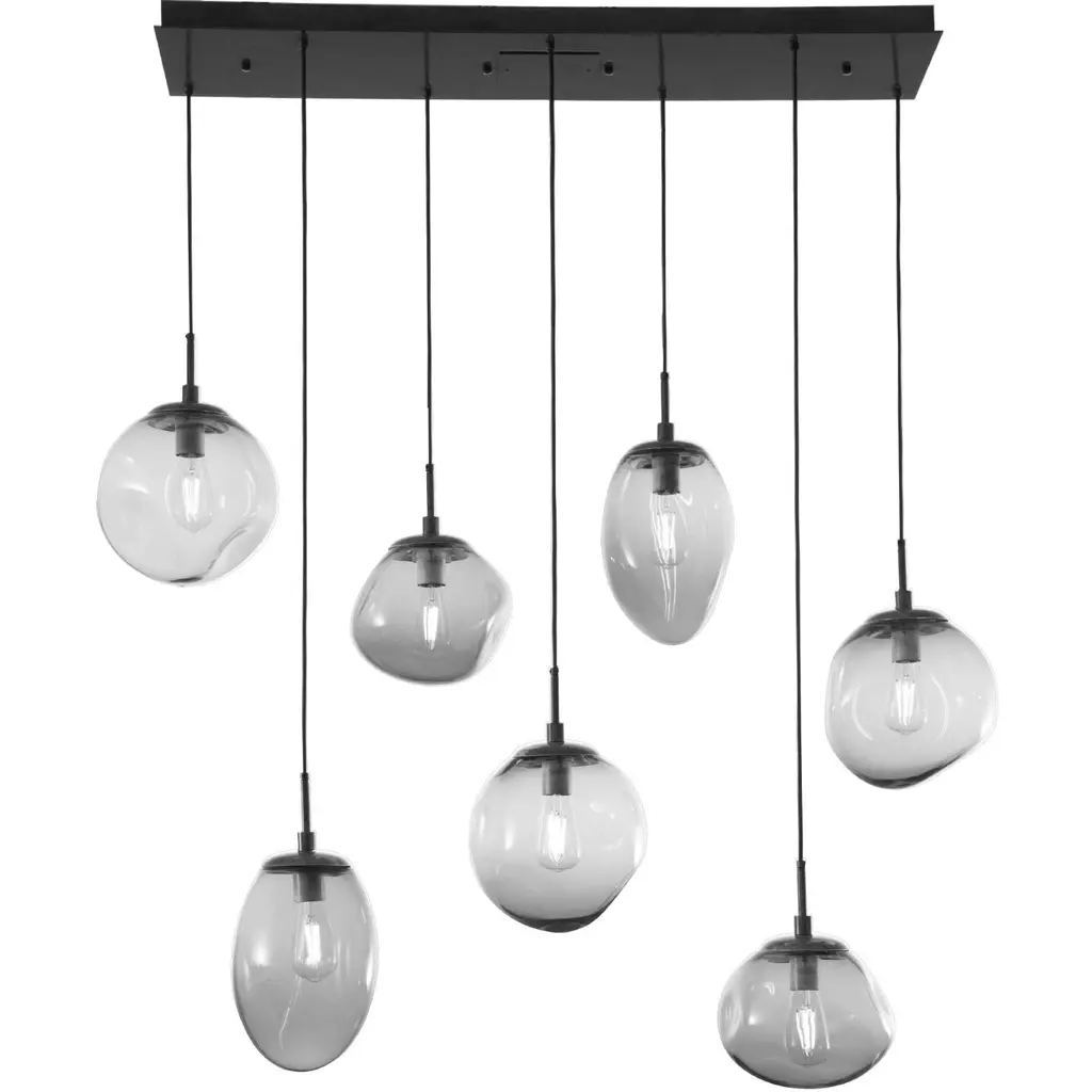 Cosmos Linear Multi-Pendant-5PC-Incandescent-Classic Silver-Smoke Blown Glass-Cloth Braided Cord-E26