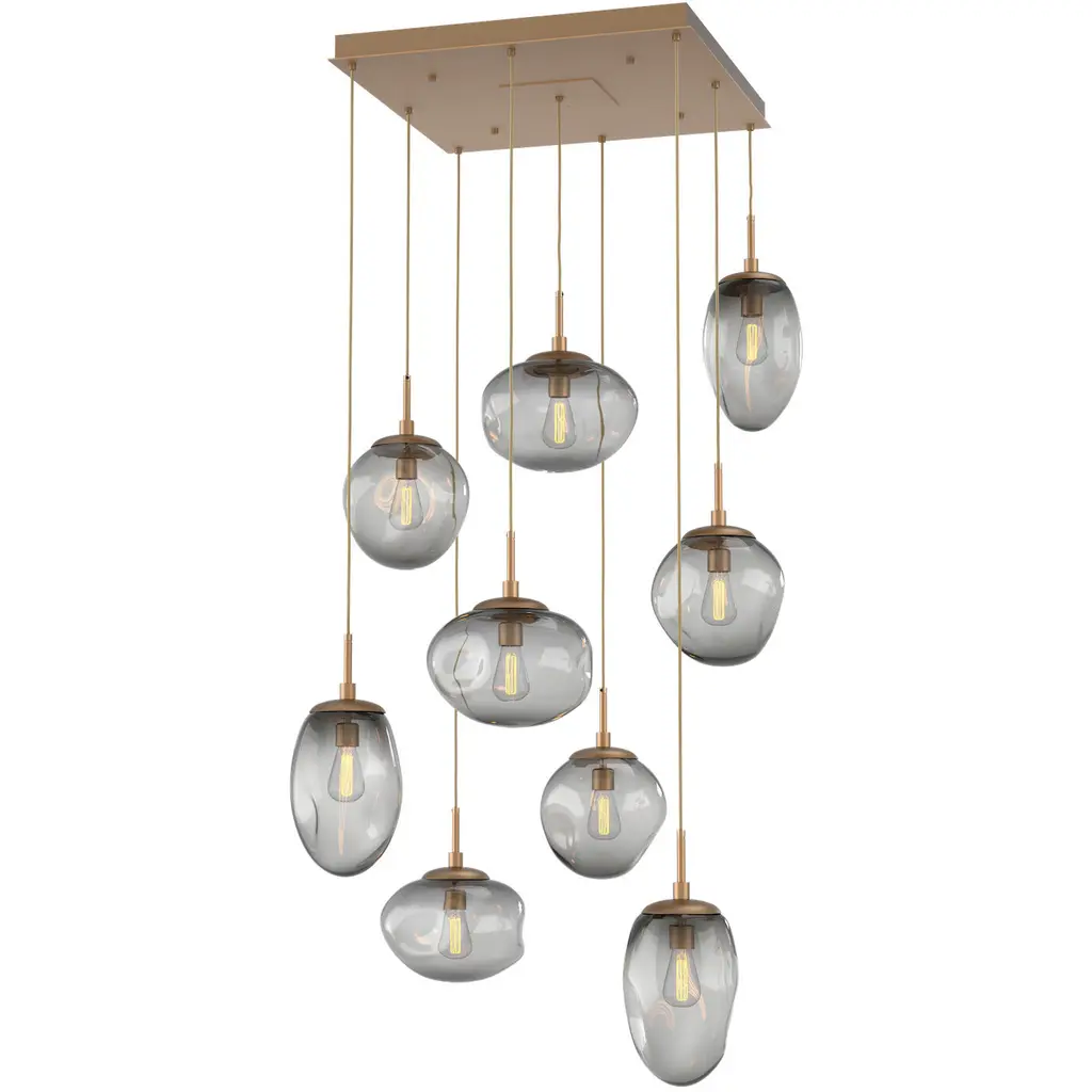 Cosmos Incandescent 9 Light 32 Inch Matte Black Multi-Pendant Ceiling Light In Smoke Cosmos, Square Multi-Port
