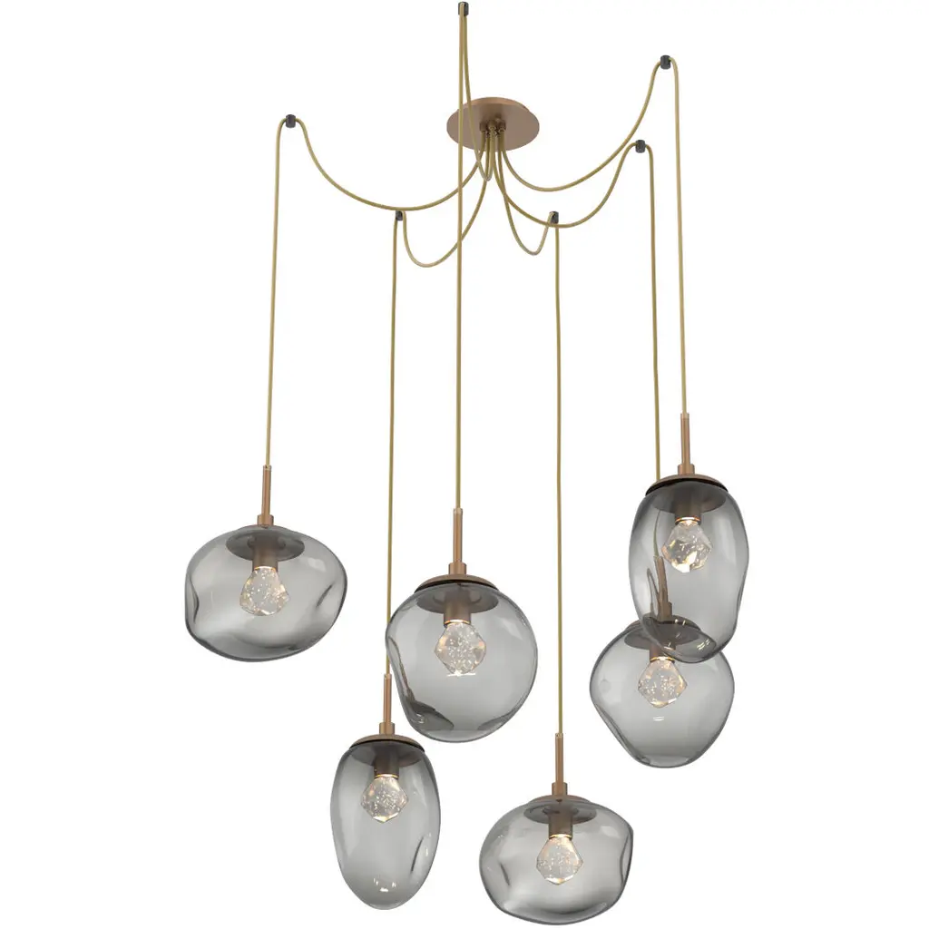 Featuring a standard configuration of all three Nebula artisan blown crystal glass styles, this versatile chandelier enables customization of the placement and height of each pendant. Pair your preferred glass color with either an LED-illuminated cast crystal glass diffuser in a choice of three styles, or with an E26 base that takes one 40W bulb.