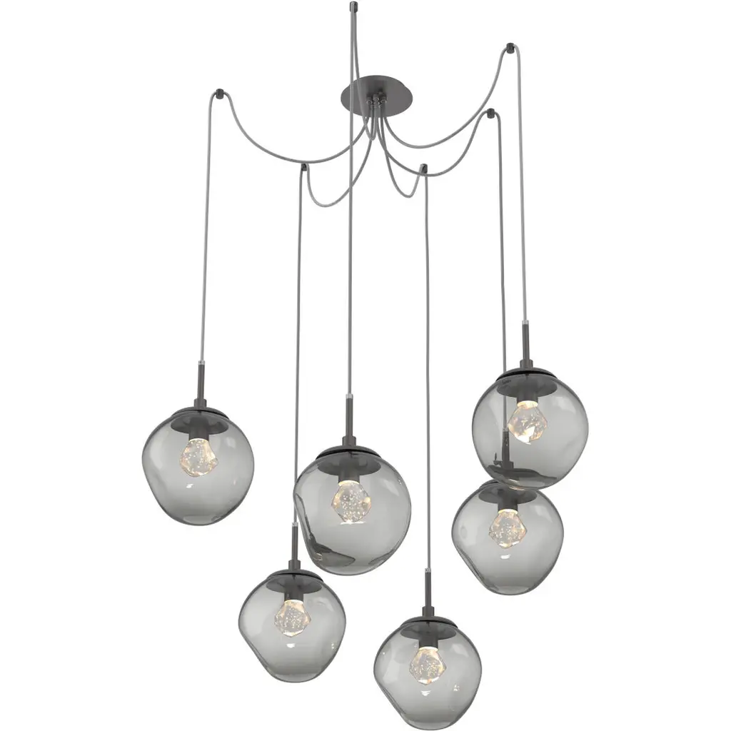 Featuring a standard configuration of all three Nebula artisan blown crystal glass styles, this versatile chandelier enables customization of the placement and height of each pendant. Pair your preferred glass color with either an LED-illuminated cast crystal glass diffuser in a choice of three styles, or with an E26 base that takes one 40W bulb.