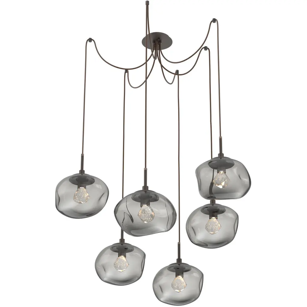 Featuring a standard configuration of all three Nebula artisan blown crystal glass styles, this versatile chandelier enables customization of the placement and height of each pendant. Pair your preferred glass color with either an LED-illuminated cast crystal glass diffuser in a choice of three styles, or with an E26 base that takes one 40W bulb.